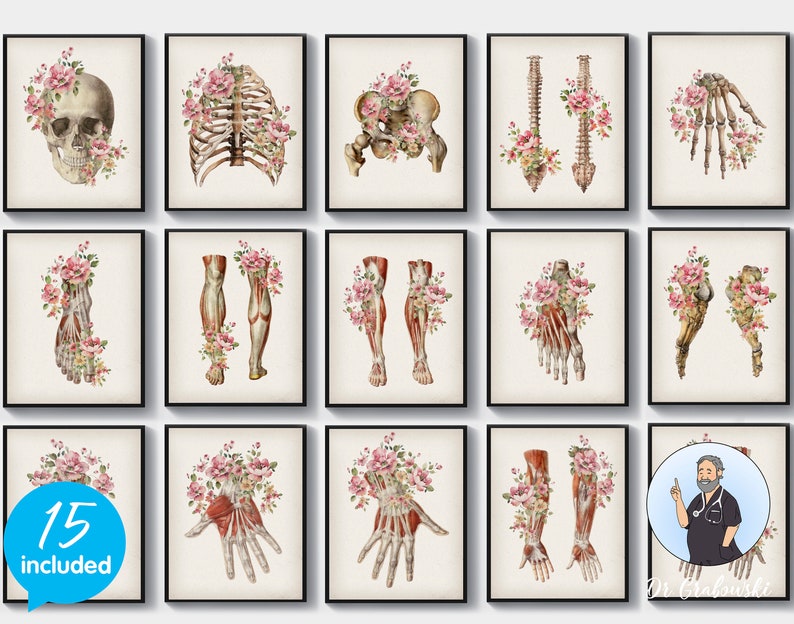 HUAHA Anatomische Poster Set - 12 Vintage Medizin Poster (42x30cm) - Wanddekoration Für Ärzte & Studenten