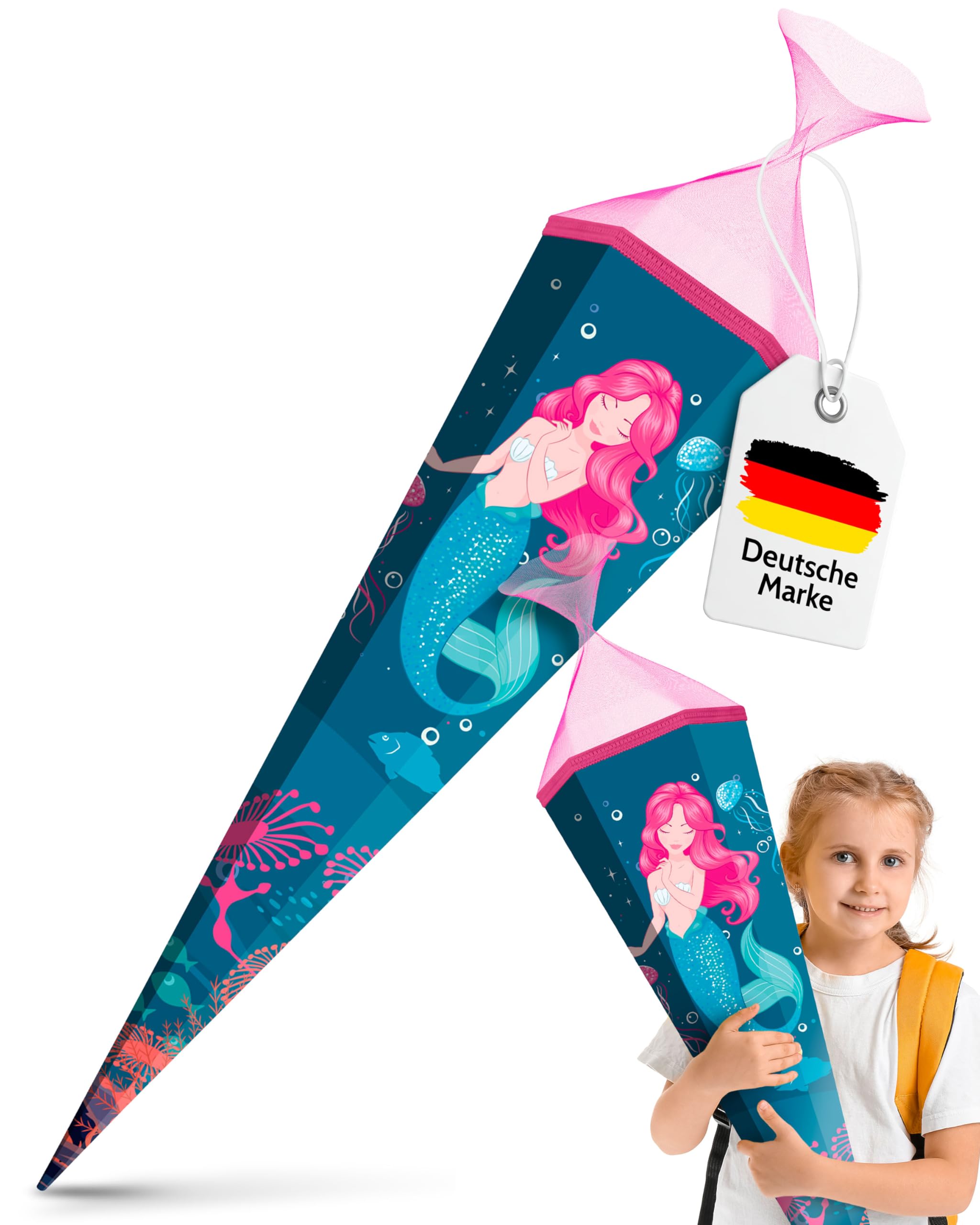 Einschulungsgeschenk Mädchen Meerjungfrau - Karte Mit Anhänger Für Schultüte & Ranzen
