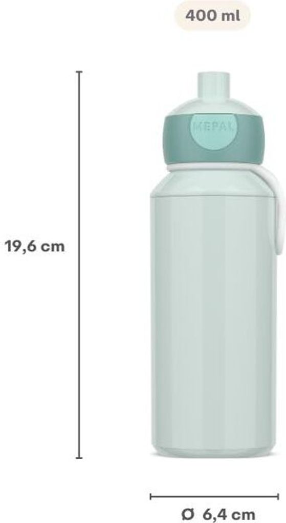 Perfekt für den Schulalltag! Diese coole Pop-up Flasche von Mepal ist absolut auslaufsicher und super einfach zu bedienen - selbst für die kleinsten Hände. Einfach den Knopf drücken und schon kann getrunken werden! Mit 400ml Fassungsvermögen ist sie ideal für die Pause oder unterwegs. Die praktische Schlaufe macht das Tragen zum Kinderspiel. Und für die Eltern: Die gesamte Flasche ist spülmaschinenfest und BPA-frei. Hergestellt in Holland mit dem typischen Mepal-Qualitätsversprechen. Dein Kind wird sie lieben - und du hast keine nassen Überraschungen in der Schultasche!
