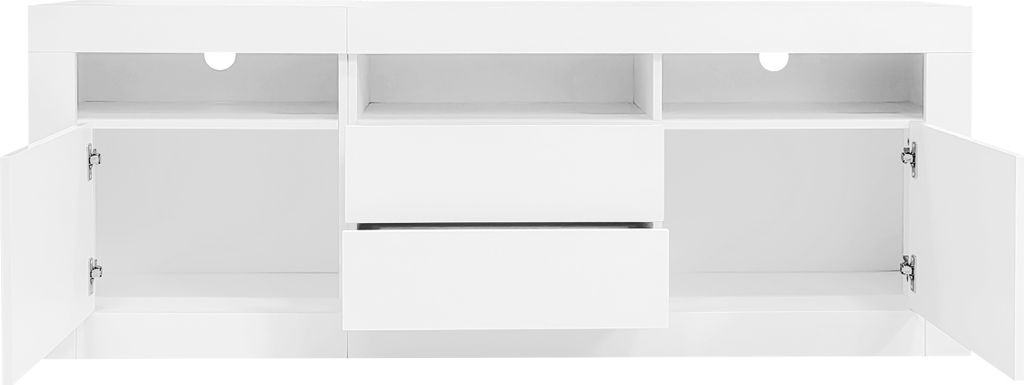 Merax TV-Schrank Lowboard 200cm - Hochglanz Weiß Mit LED-Beleuchtung, 6 Türen & 2 Schubladen