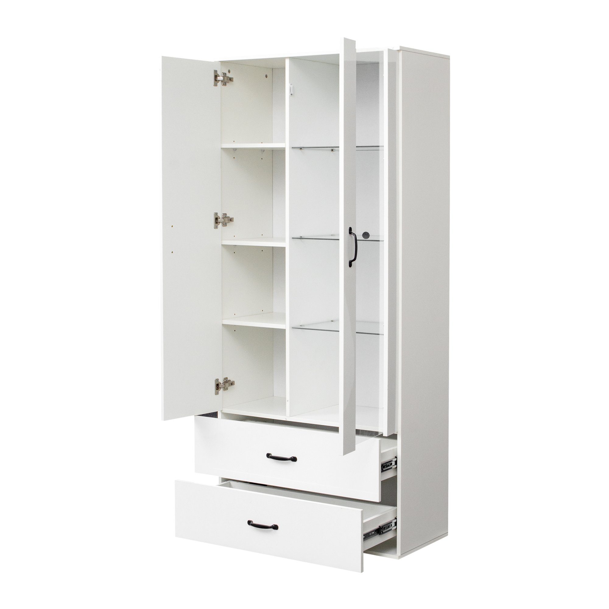 Wow, was für ein Hingucker! Dieser Merax Vitrinenschrank verwandelt dein Wohnzimmer oder Büro in eine elegante Galerie. Mit stolzen 200cm Höhe und schlanken 70x30cm Grundmaßen passt er auch in kleinere Räume perfekt. Die zwei Glastüren mit schickem Aluminiumrahmen zeigen deine Schätze von ihrer besten Seite - ob teure Spirituosen, Lieblingsbücher, Sammlerfiguren oder Urlaubserinnerungen. Das absolute Highlight: Die LED-Beleuchtung die du bequem per Smartphone-App steuern kannst! Warmes Licht für gemütliche Abende, bunte Farben für Partys - totale Stimmungsgarantie! Unten findest du eine praktische Schublade für Kleinigkeiten und einen geschlossenen Unterschrank für Dinge die nicht jeder sehen muss. Dazu kommen noch offene Fächer für deine täglichen Lieblingsstücke. Aus stabilen Spanplatten gefertigt trägt der Schrank bis zu 150kg - da kannst du getrost deine komplette Sammlung unterbringen. Der weiße Lack mit schwarzen Akzenten sieht modern und edel aus. Perfekt als Weinschrank, Bücherregal oder einfach als stylische Aufbewahrungslösung. Ein Möbelstück das nicht nur praktisch ist, sondern deinem Zuhause das gewisse Etwas verleiht!