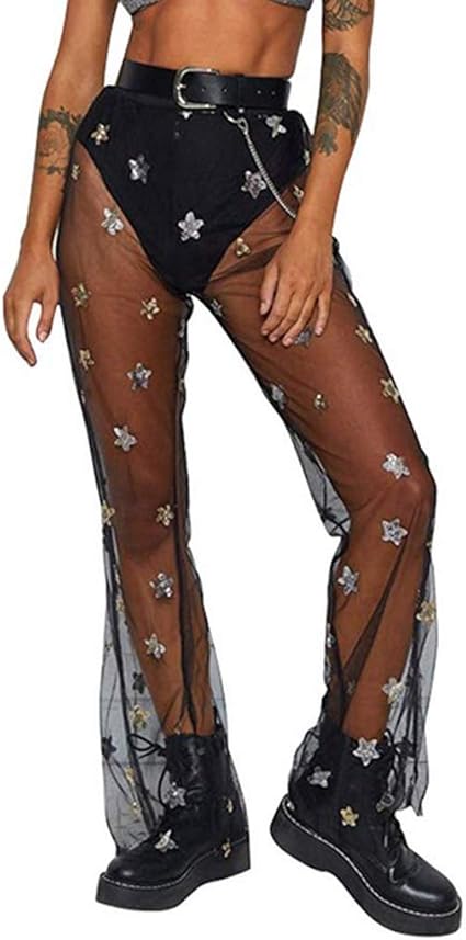 GORGLITTER Damen Mesh Schlaghose - Transparente Yogahose Mit Hoher Taille