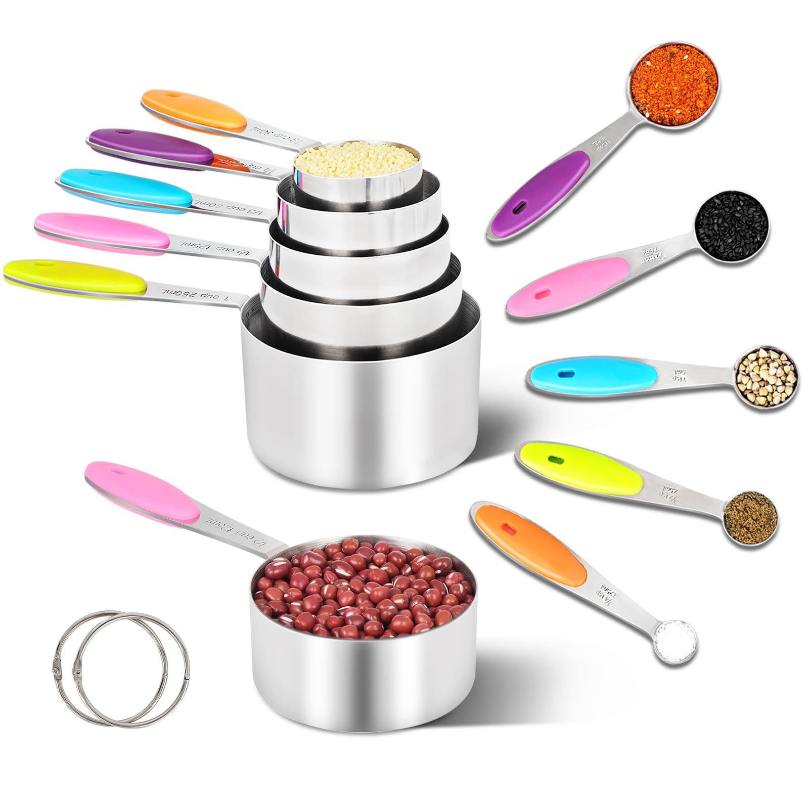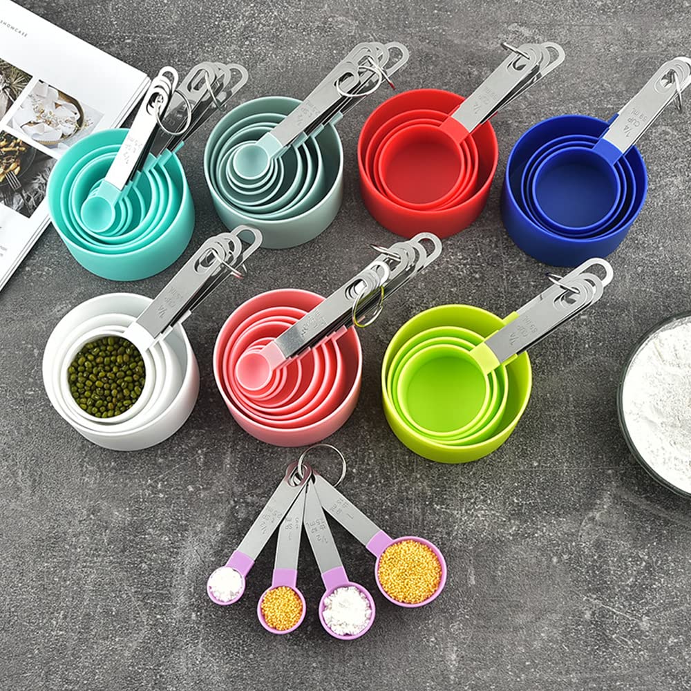 Das perfekte Messset für deine Küche! Dieses 8-teilige Set aus robustem Kunststoff und Edelstahl macht das Abmessen zum Vergnügen. Enthalten sind: 1 Tasse (236ml), 1/2 Tasse (118ml), 1/3 Tasse (78ml), 1/4 Tasse (59ml) sowie 1 Esslöffel (15ml), 1/2 Esslöffel (7,5ml), 1 Teelöffel (5ml) und 1/2 Teelöffel (2,5ml). Die Edelstahl-Griffe sind angenehm in der Hand und mit präzisen Maßen graviert. Super für trockene und flüssige Zutaten - ob Mehl, Zucker, Öl oder Milch. Alles lässt sich platzsparend ineinander verstauen und mit dem abnehmbaren Ring ordentlich aufbewahren. Perfekt für Hobby-Köche und Back-Enthusiasten, die Wert auf genaue Mengenangaben legen. Ein unverzichtbares Helferlein für jede Küche!