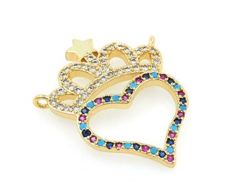 6 Zirkonia Herz Charms - Messing Anhänger Für DIY Schmuck