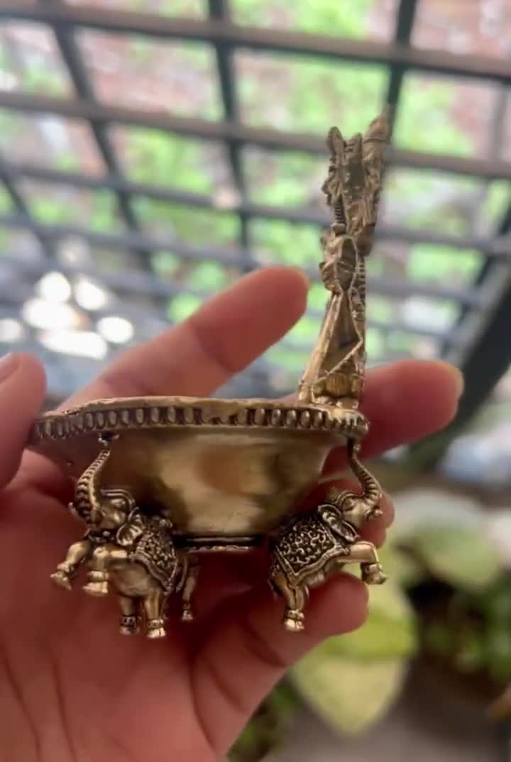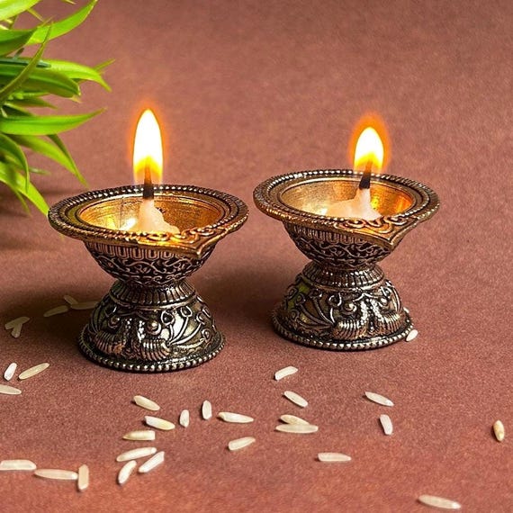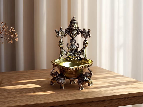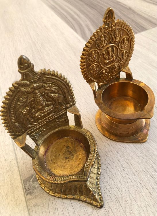 Messing Diya-Lampe Handgefertigt - Goldene Öllampe Für Puja & Dekoration