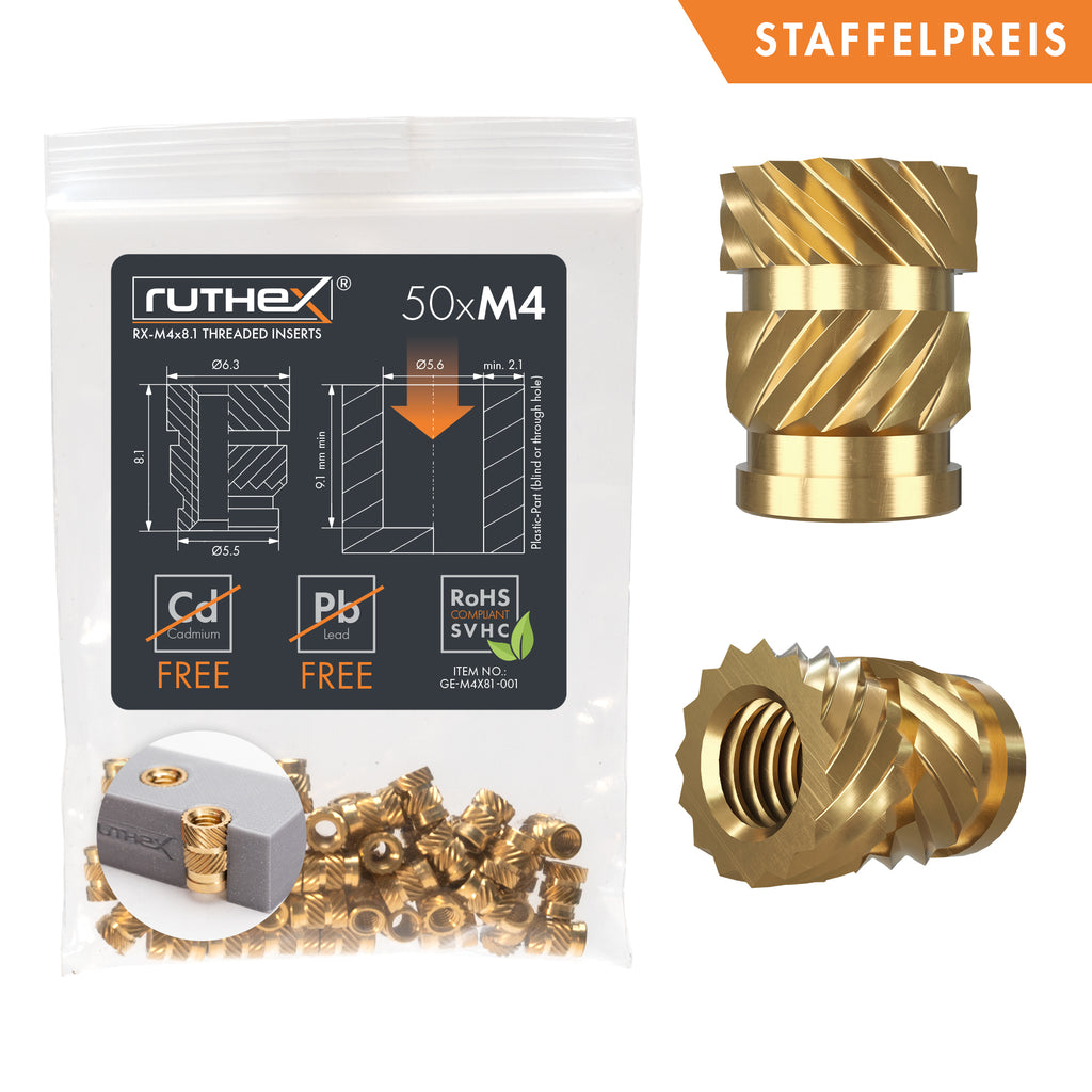 Professionelle Lösung für stabile Gewinde! Diese 100 M3 Gewindeeinsätze aus Messing sind perfekt für 3D-Druck, Modellbau und Elektronik. Maße: M3 x 5 x 4mm. Einfach mit Lötkolben, Heizung oder Ultraschall in Kunststoffteile einschmelzen. Die Messing-Qualität rostet nicht und die glatten Gewinde halten bombenfest. Inklusive praktischer Pinzette für einfache Handhabung. Kompatibel mit Ruthex Gewindeeinsätzen. Ideal für Autoteile, Kameras, Computer und Leiterplatten. Mach deine 3D-Drucke und Modelle professioneller mit diesen robusten Gewindeeinsätzen!