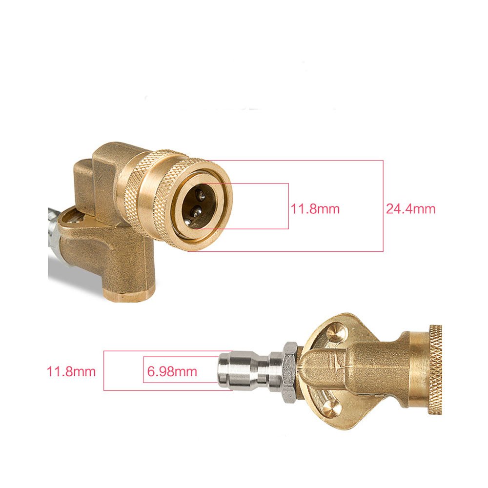 Endlich auch schwer erreichbare Stellen reinigen! Diese VOANZO Schwenkkupplung aus Messing und Edelstahl macht's möglich. 1/4 Zoll Quick-Connect für alle gängigen Hochdruckreiniger. Bis 4500 PSI Druckfestigkeit. Verstellbar auf 5 Winkel: 45°, 90° und 120° links/rechts. Perfekt für Felgen, Auto-Chassis, Dachrinnen oder Abflüsse. Einfach zwischen Stab und Düse stecken - schon kannst du um die Ecke reinigen. Spart Zeit und Nerven. Profi-Qualität für makellose Reinigungsergebnisse!