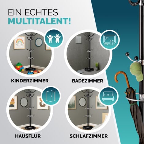 Boah, dieser Garderobenständer ist genau das, was du brauchst wenn im Flur ständig die Jacken rumfliegen! Mit 175cm Höhe und 12 robusten Haken hast du Platz für Jacken, Mäntel, Taschen, Hüte - einfach alles was so anfällt.