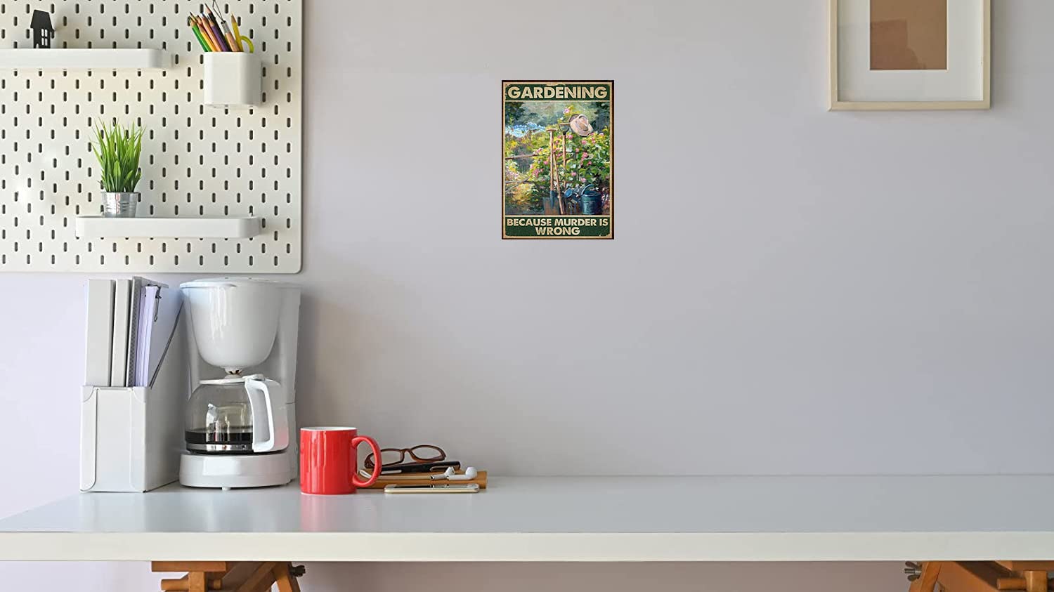 Dieses lustige Gartenschild ist ein echter Hingucker! Mit dem Spruch 'Gardening Because Murder Is Wrong' bringt es jeden zum Schmunzeln. Aus robustem Eisen, 30x20cm groß, mit vier vorgebohrten Löchern für einfache Montage. Die matte Oberfläche ist wetterfest und verblasst nicht - hält also auch draußen ewig! Perfekt für Garten, Terrasse, Zaun oder Hauswand. Ein super Geschenk für Gartenfreunde, Mütter oder Omas - zu Geburtstag, Weihnachten oder einfach so. Bringt rustikalen Charme in deinen Outdoor-Bereich! Einfach aufhängen und sich über Komplimente freuen. Damit wird dein Garten zum echten Eyecatcher!