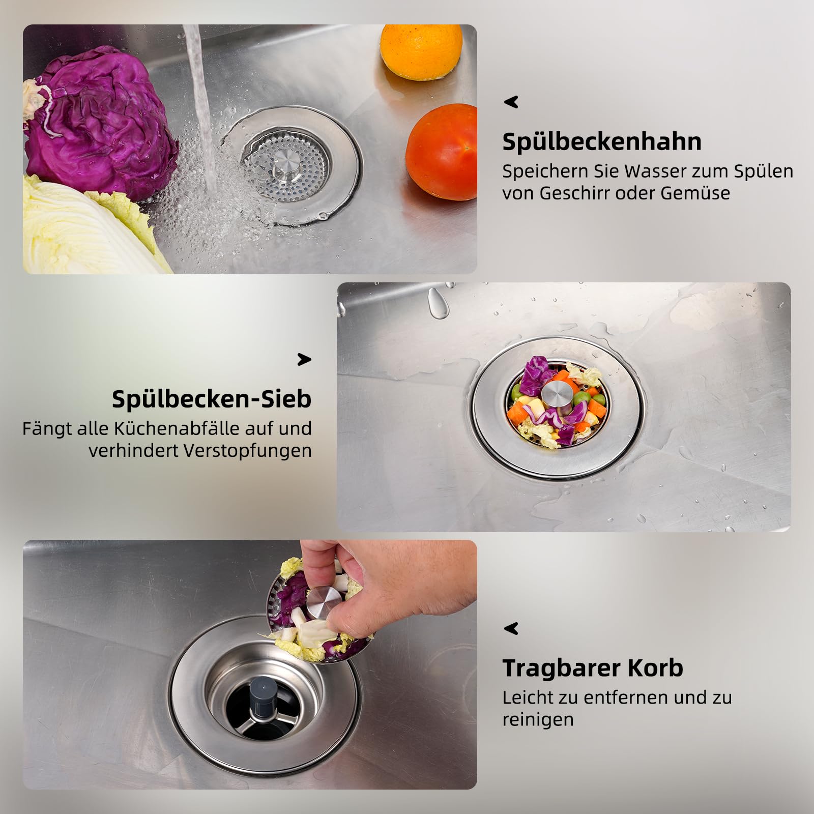 Hey, dieser Hibbent Spülbecken-Stopfen ist ja mal total praktisch! Aus robustem SUS304 Edelstahl gefertigt, rostet er nicht und ist super langlebig. Die 3-in-1-Funktion kombiniert Wasserspeicherung, Abseihen und Geruchsisolierung in einem cleveren Design! Perfekt für Spülbecken mit 70-86mm Lochdurchmesser und mindestens 26mm Tiefe - passt also in die meisten Standard-Spülen. Der Pop-Up-Mechanismus macht's super einfach: Einfach drücken und schon läuft das Wasser ab! Der Edelstahl-Siebkorb fängt zuverlässig Speisereste auf und verhindert so verstopfte Abflüsse. Besonders praktisch: Er ist hitzebeständig und korrosionsfest - hält also alles aus, was in der Küche so anfällt! Die Reinigung ist ein Kinderspiel, einfach rausnehmen und abspülen. So hast du immer eine hygienische Spüle und keine unangenehmen Gerüche mehr! Also, wenn du dich über verstopfte Abflüsse oder üble Gerüche ärgerst, ist dieser Stopfen genau die richtige Lösung! Einfach einbauen und sich über eine funktionierende Spüle freuen!