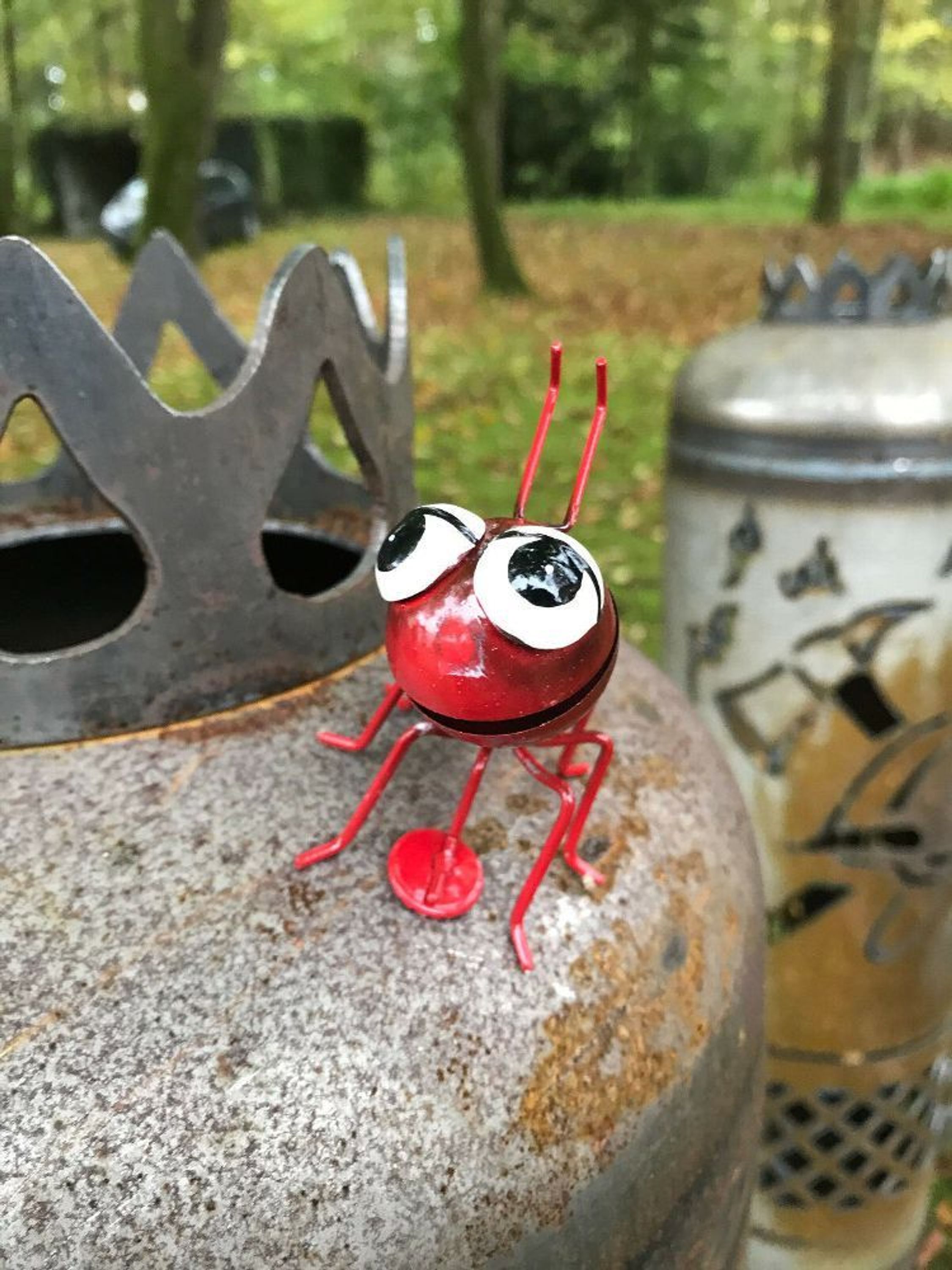 Diese 5 bunten Metall-Ameisen bringen Leben in deinen Garten! Jede Ameise ist 11x8x11 cm groß und hat riesige, niedliche Augen, die einfach gute Laune machen. Die kleinen Kerlchen sehen aus wie eine neugierige Ameisen-Truppe, die gerade die Welt erkundet. Hergestellt aus robustem Metall halten sie Wind und Wetter problemlos stand - ob im Garten, auf dem Balkon oder der Terrasse. Besonders cool: Der Halsbereich ist als Feder gestaltet, sodass du die Ameisen in verschiedene Positionen biegen kannst. So kannst du deine eigene Ameisen-Parade zusammenstellen! Es gibt sie in fünf knalligen Farben: Rot, Gelb, Blau, Grün und Pink. Du kannst die Ameisen auf dem Rasen verteilen, an der Wand befestigen oder als Tischdekoration verwenden. Sie sind ein super Hingucker und ein tolles Geschenk für alle, die originelle Deko lieben. Stell dir vor, wie deine Gäste schmunzeln, wenn sie diese niedliche Ameisen-Armee entdecken! Die Verarbeitung ist hochwertig und die Farben bleiben auch bei Sonne und Regen schön kräftig. Einfach ein lustiges Detail für Haus und Garten!