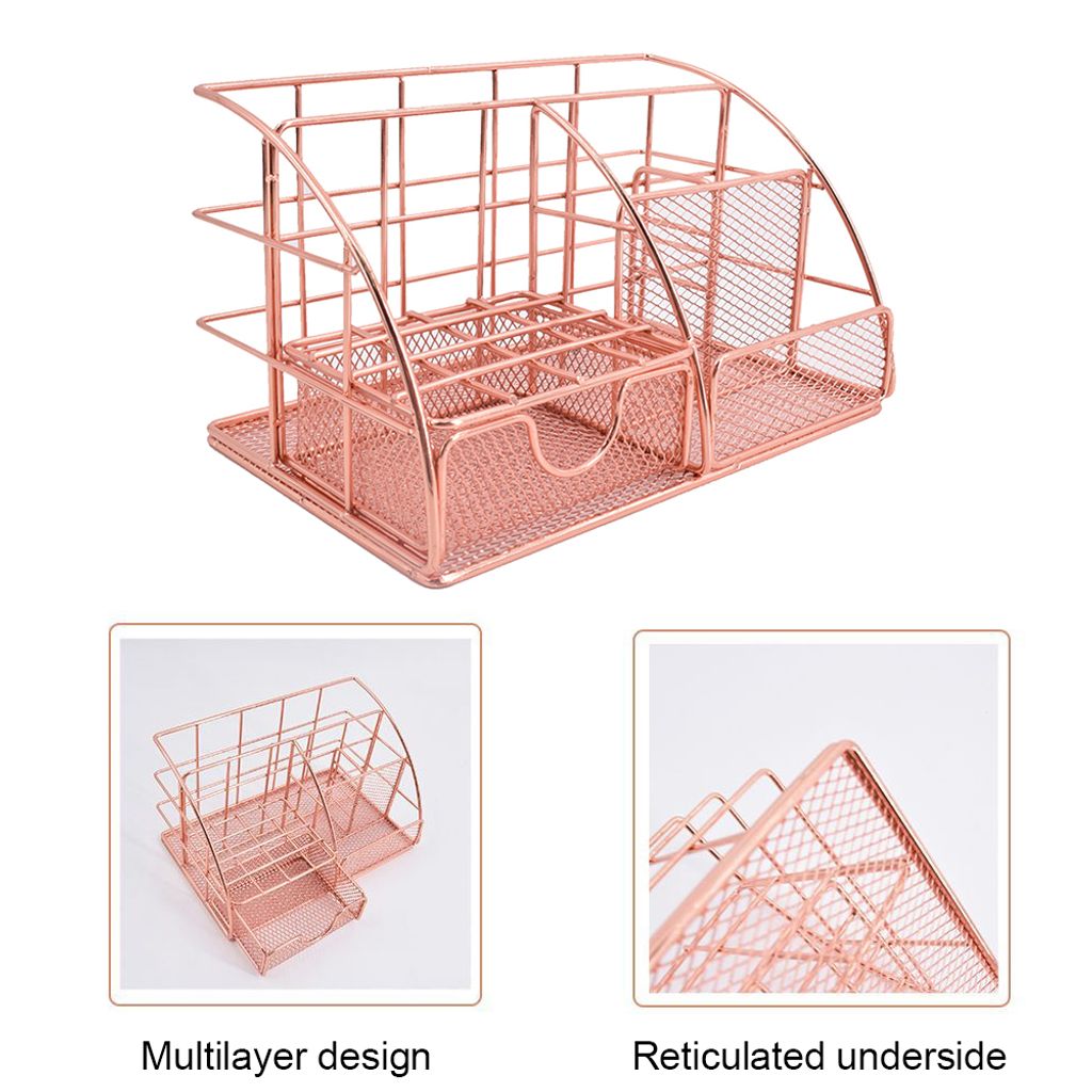 Schluss mit dem Chaos auf dem Schreibtisch! Dieser stylische OKPOW Organizer bringt Ordnung in dein Arbeitsleben. Mit 6 praktischen Ablagen in verschiedenen Größen findest du Platz für alles: Stifte, Handy, Notizblock, Büroklammern und vieles mehr. Die extra Schublade ist perfekt für wichtige Kleinigkeiten, die du nicht immer sehen willst. Aus robustem Metall gefertigt und schwarz pulverbeschichtet - sieht nicht nur gut aus, sondern hält auch was aus. Die weichen Füße an der Unterseite schützen deine Tischoberfläche vor Kratzern. Mit den Maßen 22x14x13cm ist er kompakt genug für jeden Schreibtisch, aber groß genug für all deine Utensilien. Ob im Büro, im Homeoffice oder für den Schreibtisch der Kinder - mit diesem Organizer behältst du immer den Überblick. Endlich mehr Platz zum Arbeiten und weniger Zeit mit Suchen!