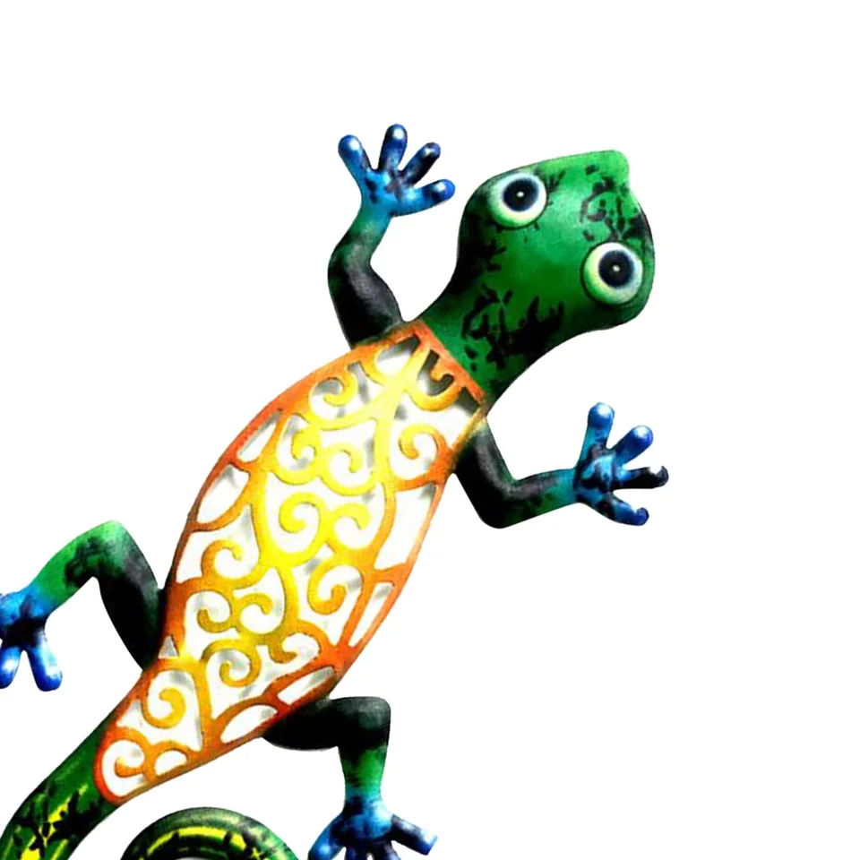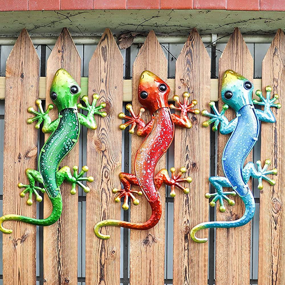 4x Metall Gecko Wanddekoration - Bunte Gartendekoration Für Zaun & Terrasse
