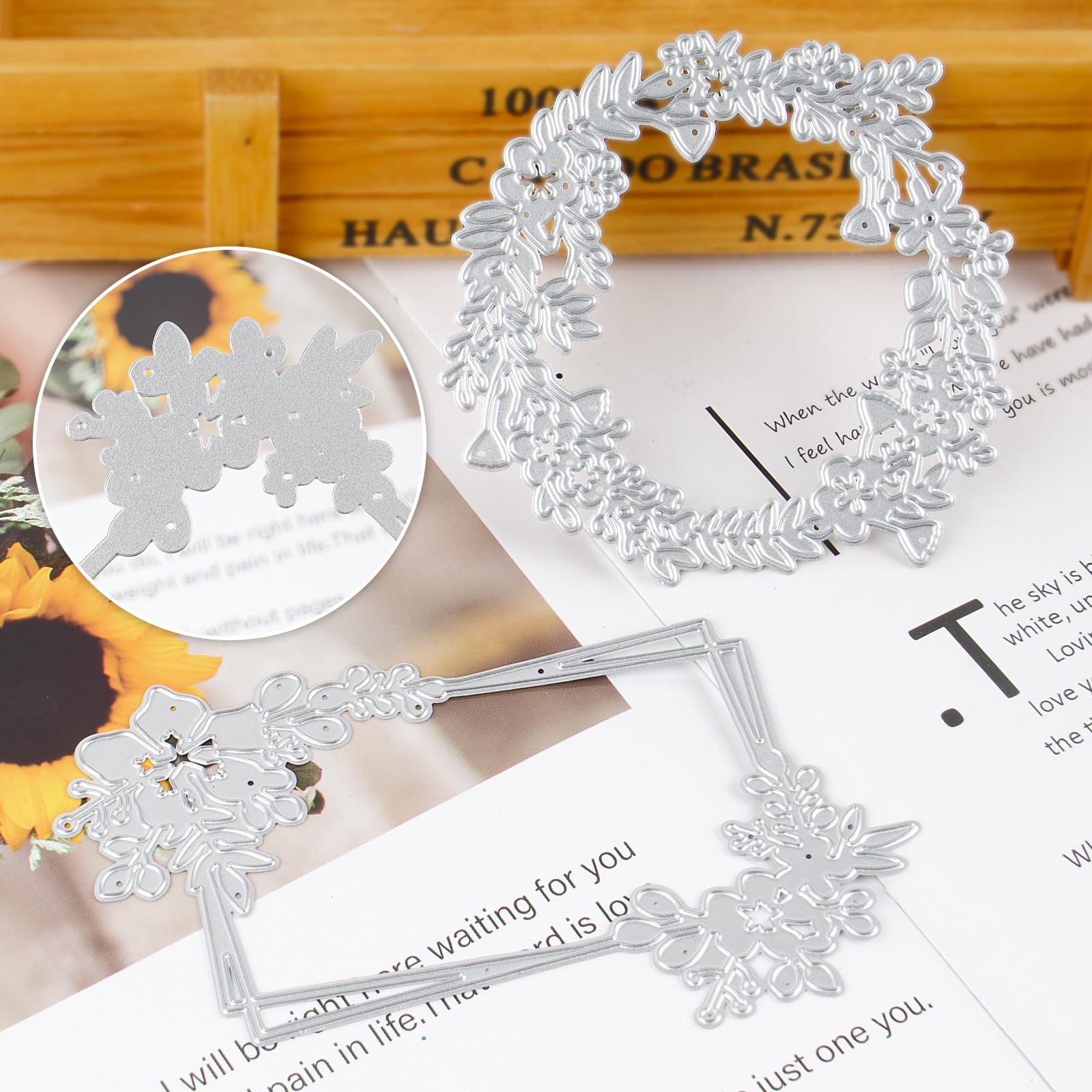 Stanzschablonen Silberkranz & Blätter - Metall Prägeschablonen Für Basteln
