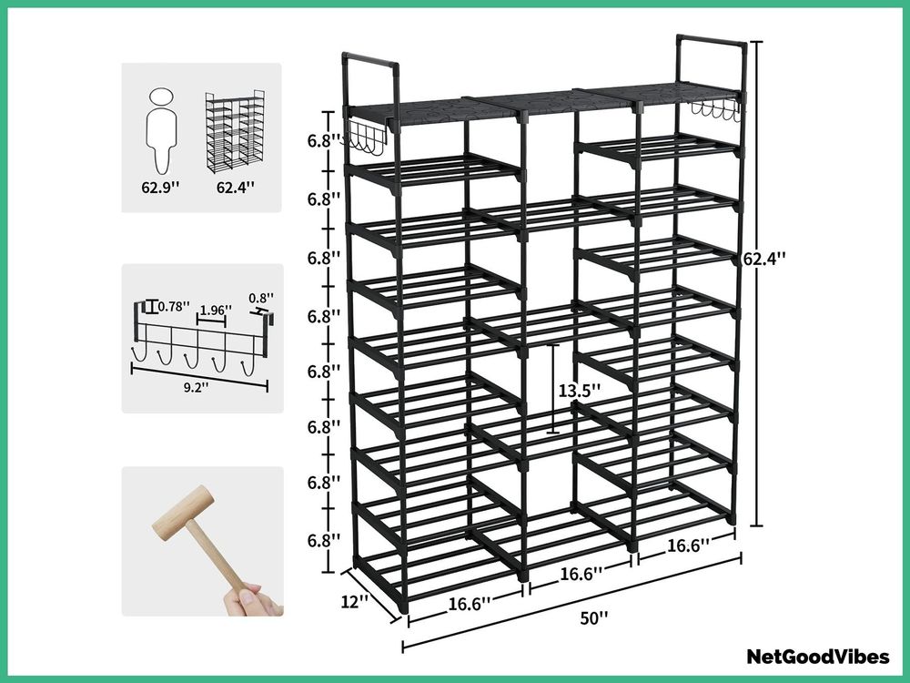 ALFKET Schuhregal 9 Ebenen - Metall Regal Für 55-60 Paar Schuhe