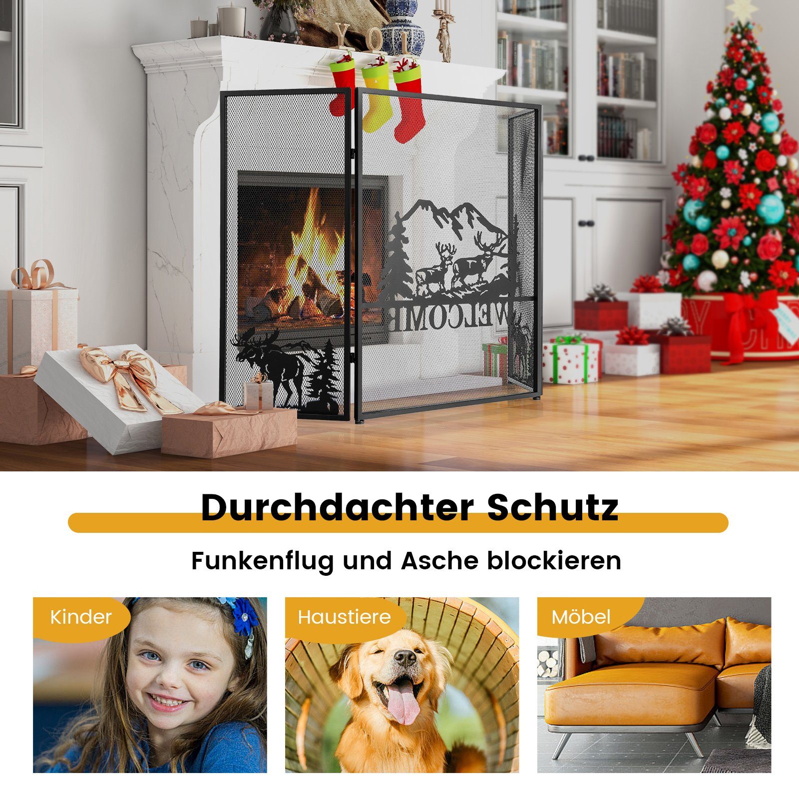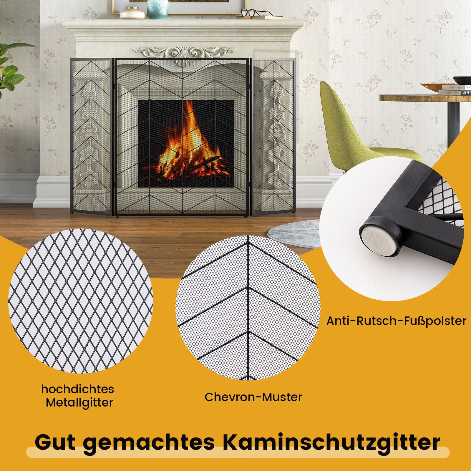 Sicherheit für deine Kleinen! Dieses stabile Kaminschutzgitter schützt deine Kinder und Haustiere zuverlässig vor Kamin, Ofen oder Treppen. Mit 305cm Gesamtlänge und 76cm Höhe bietet es ausreichend Schutzbereich. Die praktische Tür mit kindersicherer Verriegelung ermöglicht Erwachsenen einfachen Zugang, bleibt für Kinder aber verschlossen. Aus robustem Stahlrohr gefertigt - hält auch lebhaften Kindern stand! Einfache Montage ohne Spezialwerkzeuge, schnell auf- und abgebaut. Auch als Treppenschutz oder Raumteiler verwendbar. Mit 5 Elementen flexibel an verschiedene Raumgrößen anpassbar. In schwarzer Farbe, dezent und modern. Endlich beruhigt entspannen, während die Kleinen sicher spielen!