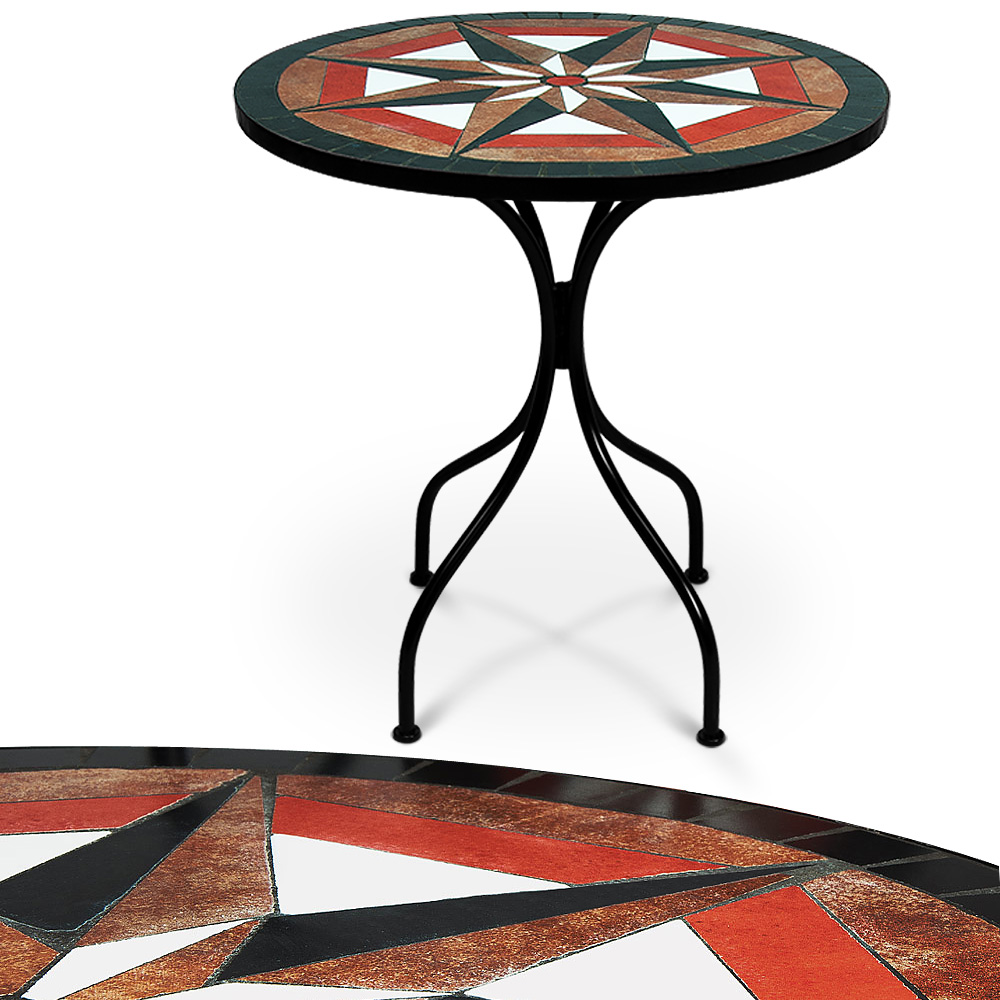 DanDiBo Mosaik-Gartentisch 60cm - Mediterraner Bistrotisch Aus Metall - Wetterfest Für Terrasse & Garten - In Orange-Rot