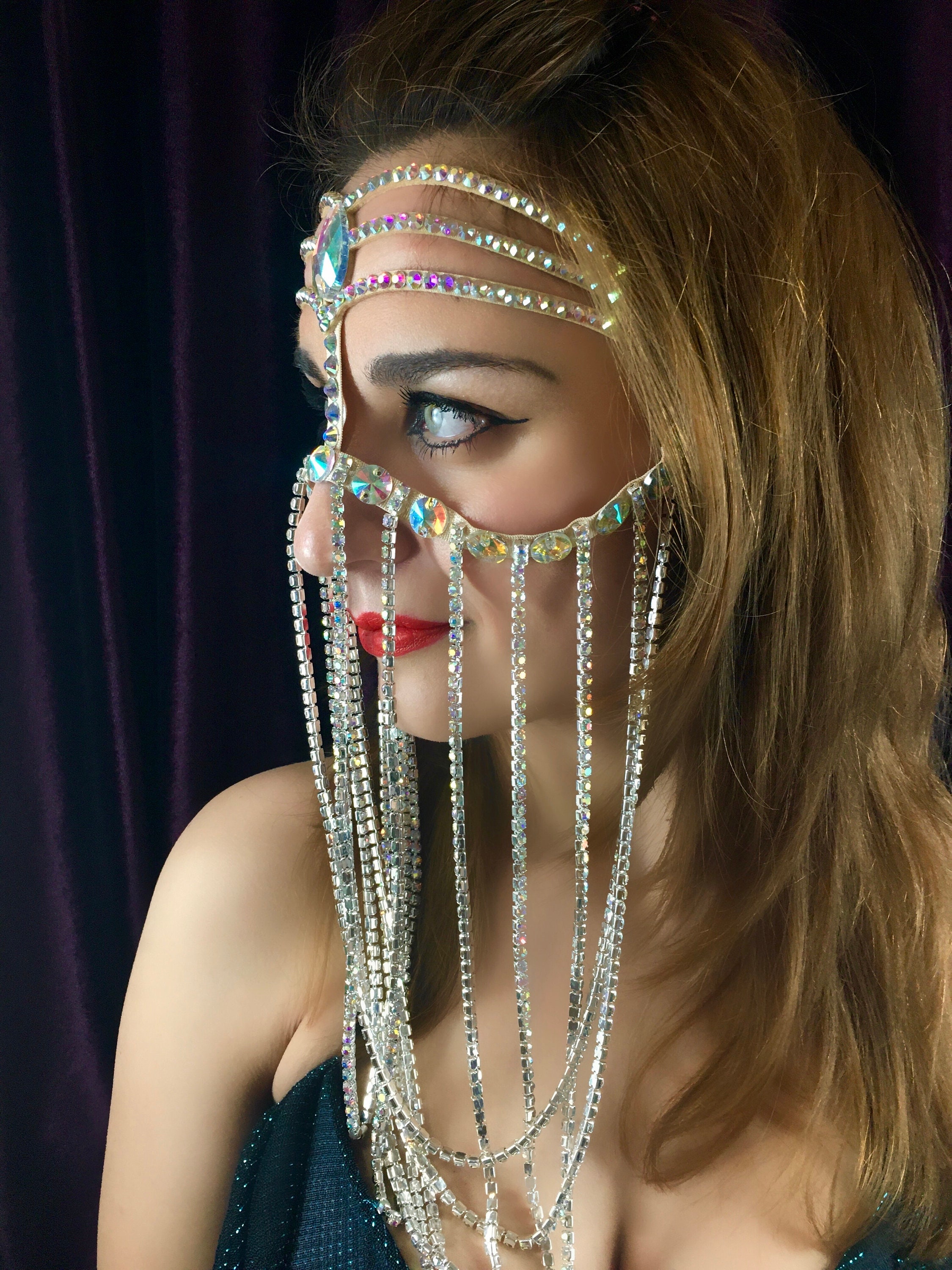 Inlzdz Kettenpanzer Gesichtsmaske - Metallische Cyberpunk Schmuck Kette