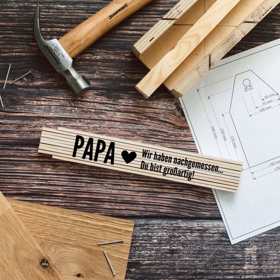 Das perfekte Geschenk für alle Handwerker! Dieses personalisierte Zollstock-Set mit 2 Meter langem Holz-Meterstab und coolen Schlüsselanhänger wird Papa oder Opa begeistern.