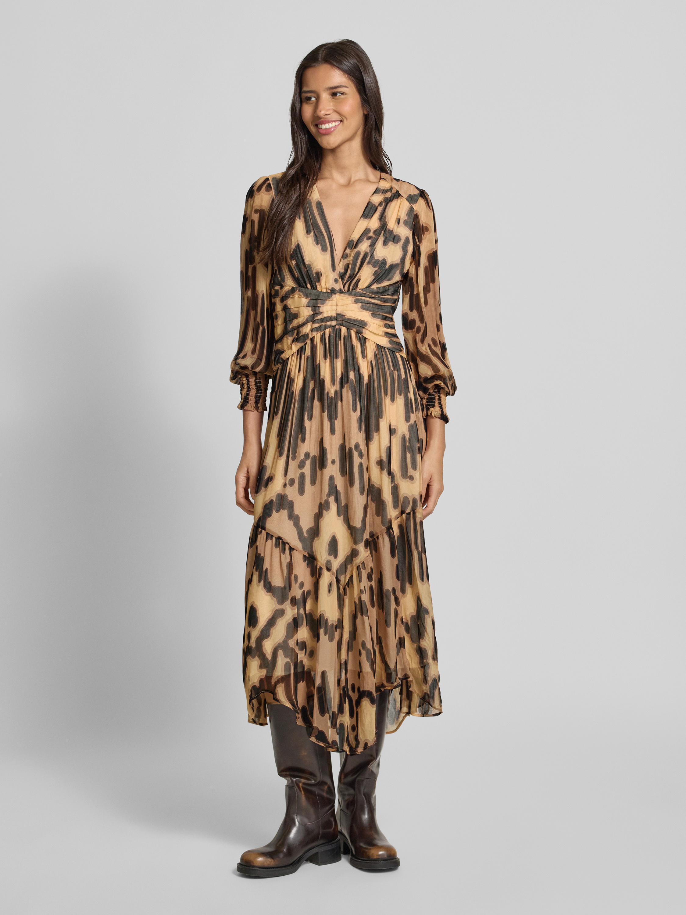 Amoretu Damen Leinenkleid Langarm - Bequemes Midi Kleid Mit Taschen & V-Ausschnitt