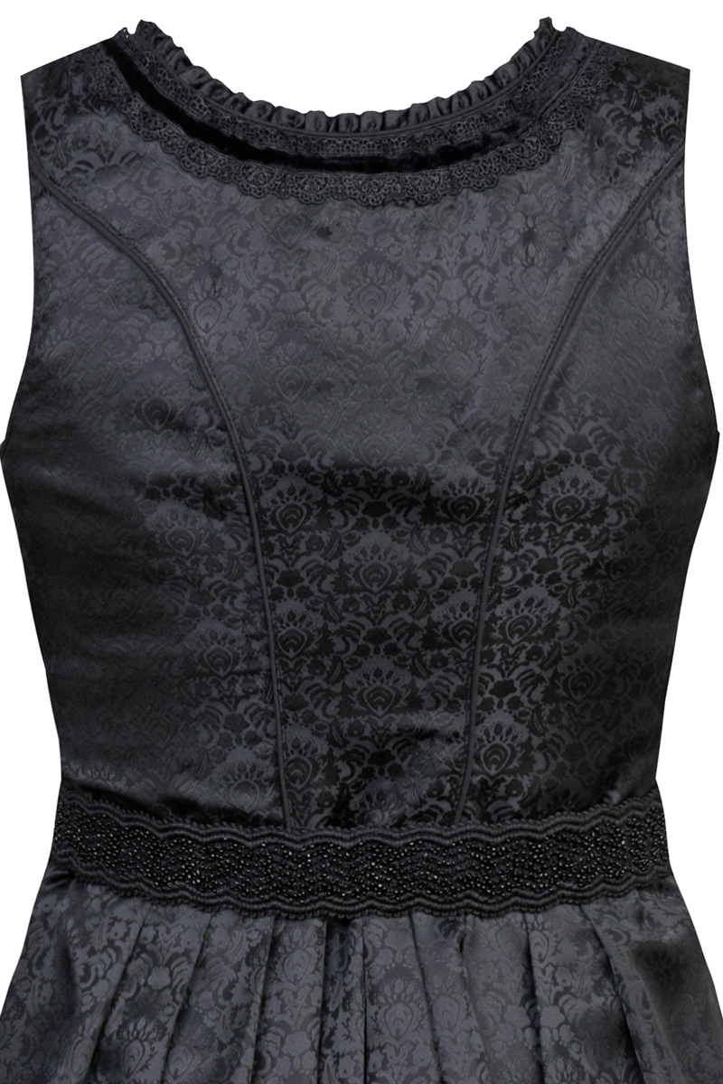 Marjo Dirndl Ensdorf 65cm Schwarz - Mididirndl Mit Gemustertem Mieder Für Damen