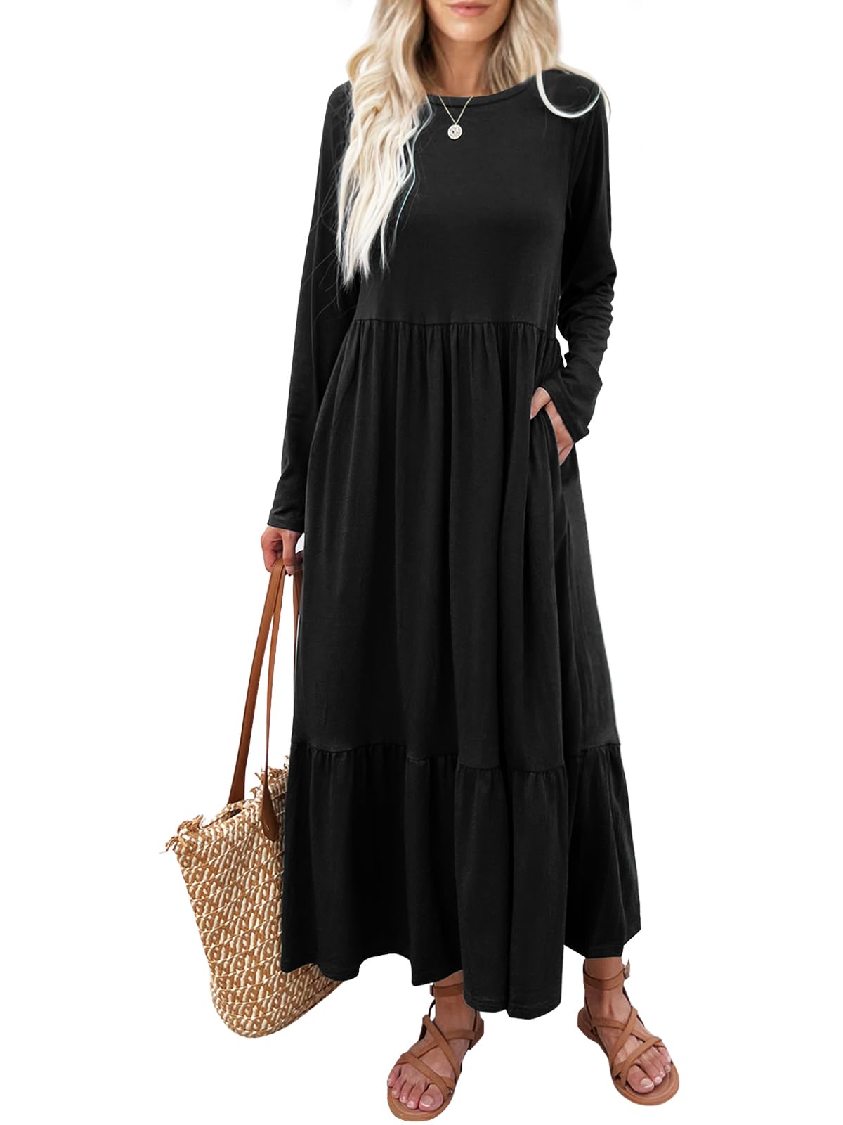 Mieazom Damen Langarm Kleid - A-Linie Swing Kleid Mit Stretch Für Herbst Und Winter