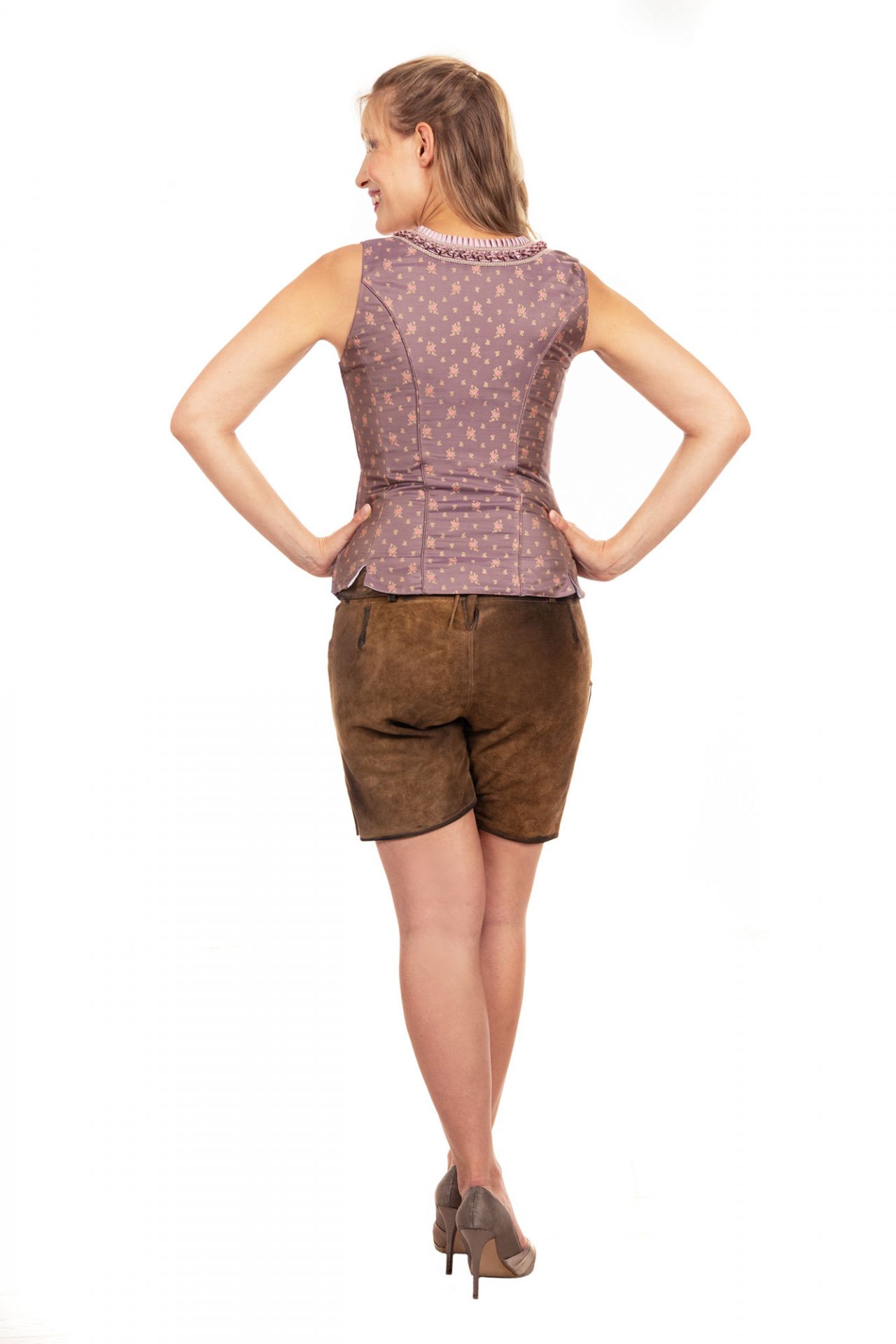 Wow, dieses Trachten Mieder Dorothea ist einfach der Hammer! Der tiefschwarze Stoff mit dem bronzefarbenen Ranken- und Blattmuster sieht so edel aus - total zeitlos und trotzdem voll im Trend. Die goldenen, fein verzierten Knöpfe geben dem ganzen noch den perfekten Schliff. Und das Beste: Es sitzt wie angegossen! Der figurbetonte Schnitt zaubert eine richtig tolle Silhouette, ohne einzuengen. Ob du es jetzt zu deinem Trachtenrock kombinierst oder mal was Anderes probieren willst mit einer Lederhose - es passt einfach immer. Perfekt fürs Oktoberfest, Hochzeiten oder wenn du einfach mal Lust auf was Besonderes im Alltag hast. Von Größe 32 bis 50 ist für fast jede Figur was dabei. Übrigens: Unser Model ist 176 cm groß und trägt Größe 36, falls du dir unsicher bist mit der Größe. Echt ein Klassiker, der in keiner Trachtengarderobe fehlen sollte!