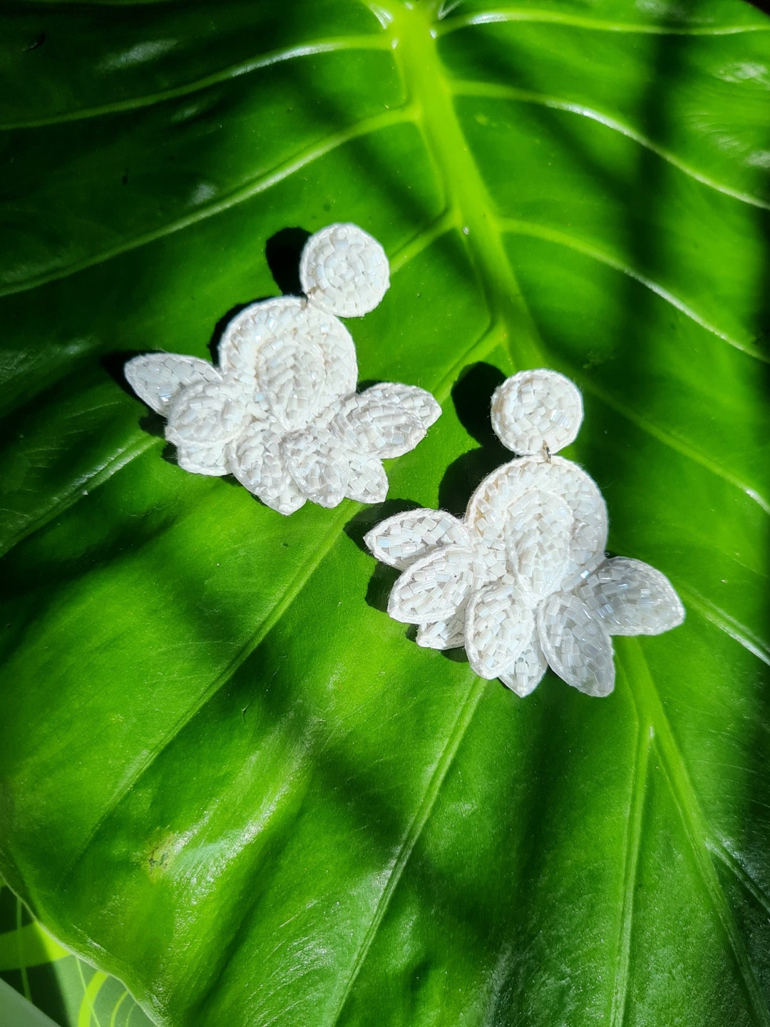 Mikovivi Blumenohrringe Weiß - Statement Ohrstecker Damen Frühlingsschmuck
