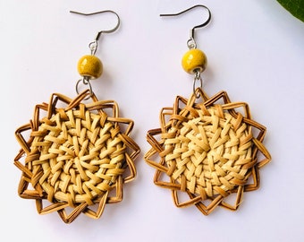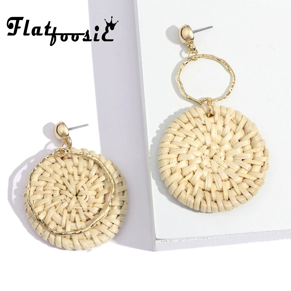 Mikovivi Handgefertigte Rattan Ohrringe - Bohemian Stroh Ohrringe Für Sommer & Strand