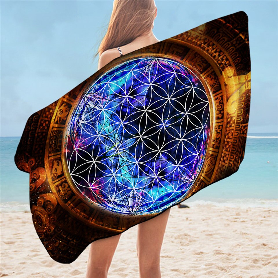 Baddecke Regenbogen 80x130cm - Weiches Mikrofaser Handtuch Mit Blume Des Lebens Motiv
