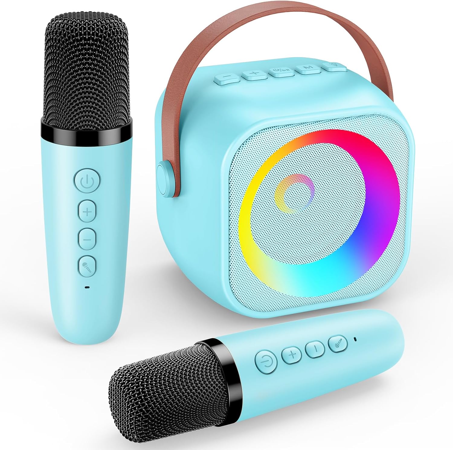 Karaoke Maschine Mit 2 Mikrofonen - Tragbarer Bluetooth Lautsprecher Mit Stimmeffekten & LED