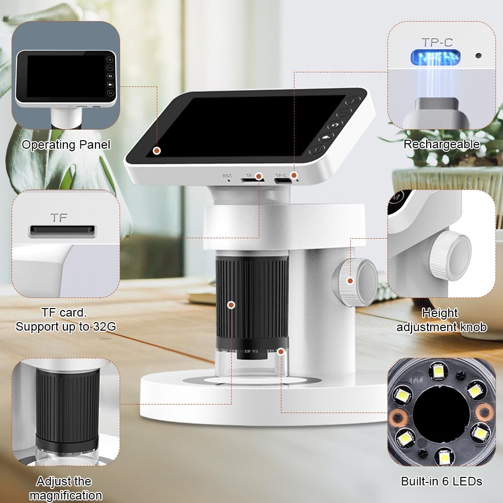 USCAMEL Digital Mikroskop 1000x - 4K Mit 3,5" Bildschirm Für Kinder & Erwachsene