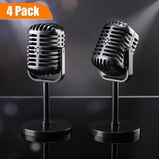 Bühne frei für dieses stylische Retro-Mikrofon! Die perfekte Deko für Partys, Fotoshootings oder als Requisite für Karaoke-Abende. Aus stabilem ABS-Kunststoff gefertigt, fühlt es sich überraschend hochwertig an.\\n\\nMit 16,5 cm Höhe ist das Mikrofon handlich aber dennoch imposant genug für tolle Fotos. Die schwarze, vintage-optik passt zu jedem Einrichtungsstil und verleiht sofort Partystimmung.\\n\\n• Höhe: 16,5 cm\\n• Material: ABS-Kunststoff\\n• Farbe: Schwarz\\n• Vintage-Design\\n• Leicht und handlich\\n\\nIdeal für Kindergeburtstage, Themenpartys oder als Deko-Element in der Wohnung. Das Mikrofon ist natürlich nicht funktionsfähig - aber dafür umso besser als Blickfang. Bring deine Party zum Klingen - zumindest optisch!