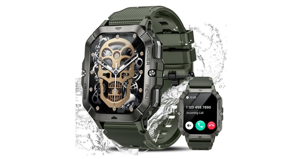 Echte Power für dein Handgelenk! Diese robuste Militär-Smartwatch mit massivem 1000mAh Akku hält bis zu 15 Tage durch - perfekt für Abenteuer und Alltag. Das große 1,75\ HD Display zeigt alles super klar an, dazu über 150 wechselbare Zifferblätter für deinen persönlichen Style. Mit integrierter Taschenlampe für Notfälle oder dunkle Wege. 130+ Sportmodi tracken deine Aktivitäten genau, ob Laufen, Radfahren oder Schwimmen (IP68 wasserdicht). Bluetooth-Anrufe direkt von der Uhr, Gesundheitsmonitoring mit 24/7 Herzfrequenz- und Schlafüberwachung. Stahlgehäuse und hautfreundliches Silikonarmband für maximalen Komfort. Echtzeit-Benachrichtigungen für Anrufe und Nachrichten. Die perfekte Begleitung für Sportler, Outdoor-Enthusiasten und alle, die Wert auf langlebige Technik legen!