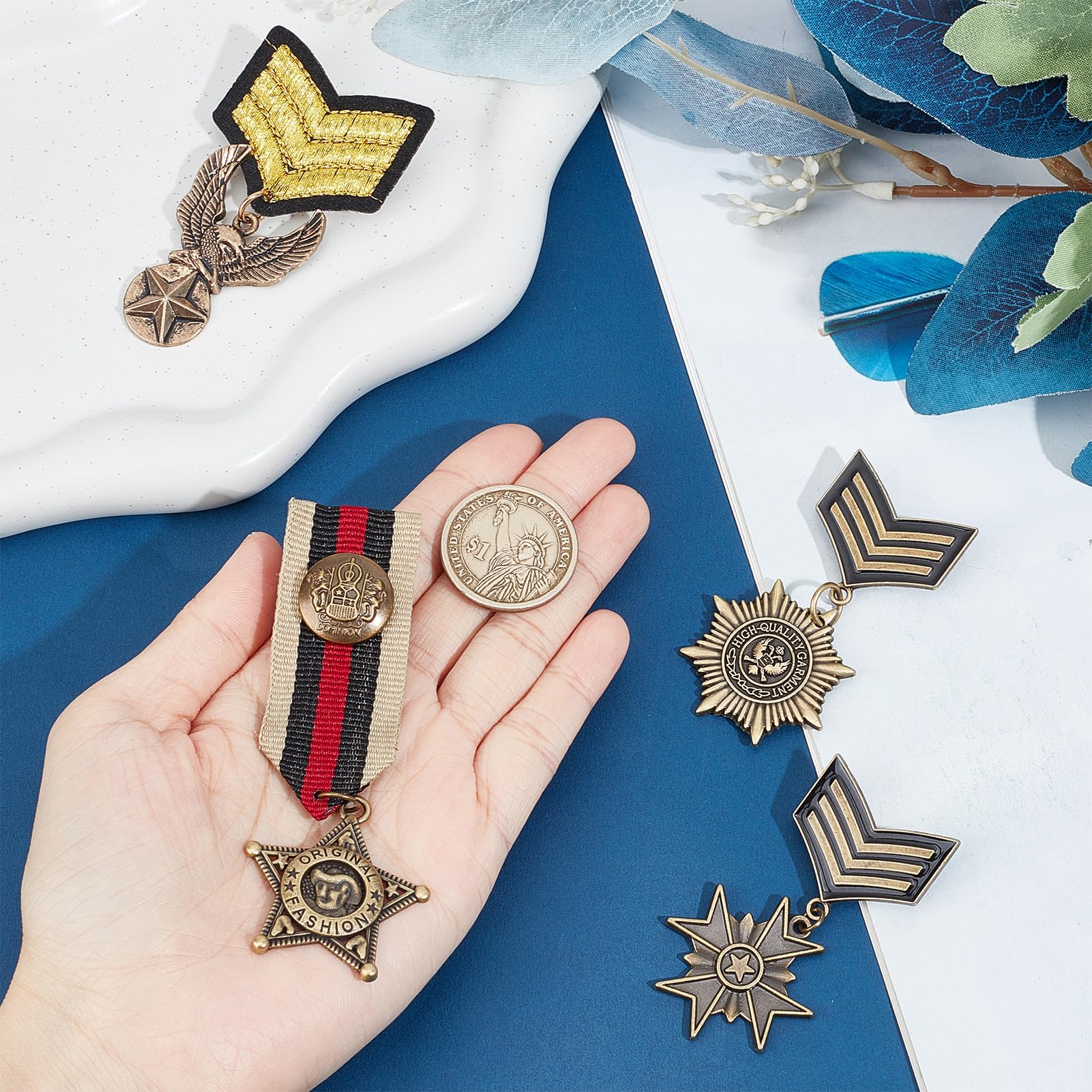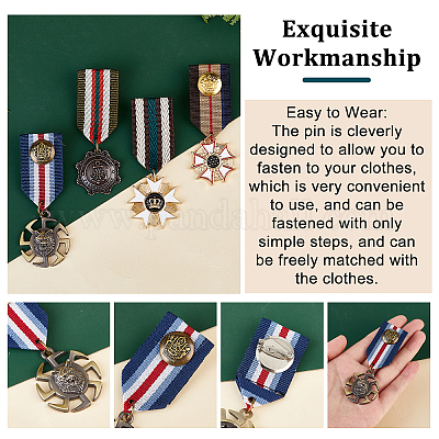 SUPERFINDINGS 4 Stück Militärmedaillen Brosche - Retro Anstecknadeln Im Britischen Preppy Stil
