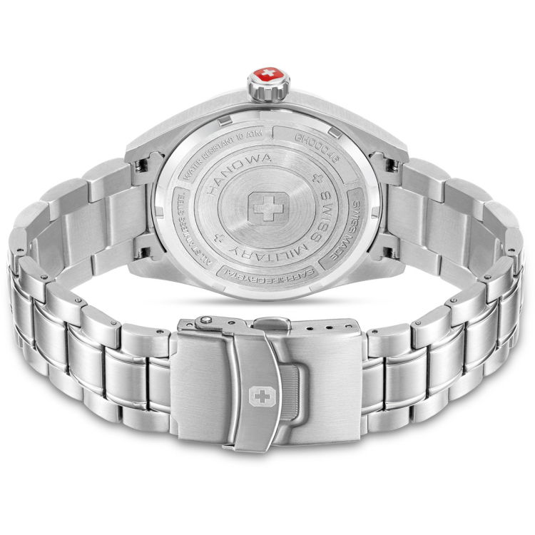 Diese Swiss Military Hanowa Uhr ist ein echter Hingucker! Das 41mm Edelstahlgehäuse sitzt perfekt am Handgelenk, ohne zu klobig zu wirken. Mit dem robusten Saphirglas kratzt so schnell nichts - das bleibt schön klar. Das silberfarbene Zifferblatt mit den Leuchtzeigern sieht nicht nur gut aus, sondern ist auch nachts super ablesbar. Swiss Ronda Quarzwerk - da geht die Uhr genau! 10 Bar Wasserdichtigkeit bedeutet: Duschen, Händewaschen, sogar Schwimmen ist kein Problem. Das Edelstahlarmband mit Sicherheitsfaltschließe sitzt bombenfest. Mit 3 Jahren Garantie und echtem Schweizer Know-how. Für jeden Tag und besondere Anlässe - einfach eine klasse Uhr!