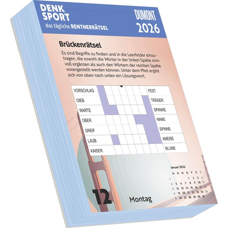 Bist du bereit für die tägliche Wissens-Challenge? Dieser Wer-wird-Millionär-Kalender für 2026 bringt dir jeden Tag eine neue Originalfrage aus der beliebten RTL-Show! Mit 313 Seiten hast du für fast das ganze Jahr Quiz-Spaß garantiert. Das kompakte Format von 15x12 cm passt perfekt auf deinen Schreibtisch, in die Küche oder ins Wohnzimmer.\\n\\nJeden Tag ein neues Rätsel - und mit den ausführlichen Lösungen lernst du sogar noch was dazu! Die perforierten Blätter lassen sich leicht abreißen, die stabile Spiralbindung hält alles zusammen. Ob alleine oder mit der Familie - dieser Kalender macht einfach Spaß und trainiert nebenbei dein Allgemeinwissen.\\n\\nPerfekt für Quiz-Fans, Wissenshungrige oder einfach alle, die gerne rätseln. Super als Geschenk für Freunde oder Kollegen! Mach deine Kaffeepause zur Quiz-Show und finde heraus, ob du die Millionenfrage knacken könntest. Mit diesem Kalender wird 2026 garantiert nicht langweilig - jeden Tag neue Herausforderungen und Aha-Momente!