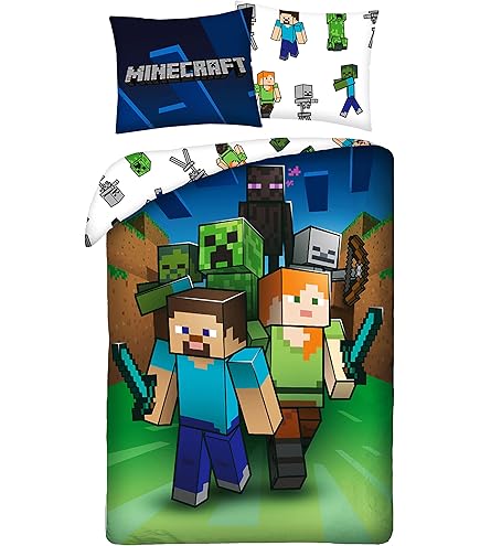 Jay Franco Minecraft Bettwäsche Set - 140x200 Cm + 65x65 Cm, 100% Baumwolle