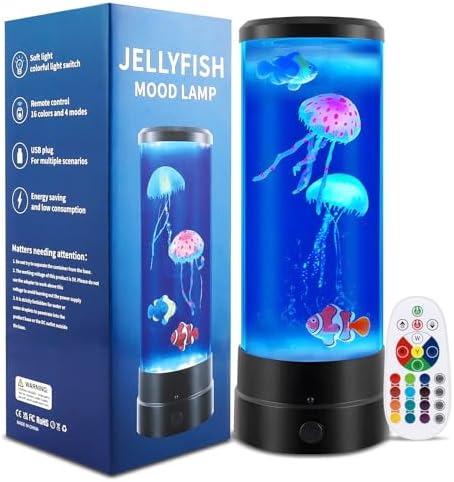 Tauche ein in eine magische Unterwasserwelt! Diese faszinierende Quallen-Lavalampe mit 29cm Höhe bringt beruhigende Meeresatmosphäre in dein Zuhause. Mit 2 künstlichen Quallen und 2 Fischen, die sanft im Wasser schweben, und 17 LED-Farben, die per Fernbedienung steuerbar sind. Wähle zwischen verschiedenen Modi: Blitz, Stroboskop, Verblassen oder sanftem Farbwechsel. Der geräuscharme Motor sorgt für entspannte Stunden ohne Störgeräusche. Perfekt als Nachtlicht, für Meditation oder einfach zur Entspannung. Einfach mit USB-Kabel betreiben und die magische Welt der Tiefe genießen. Das ideale Geschenk für alle, die Entspannung lieben!