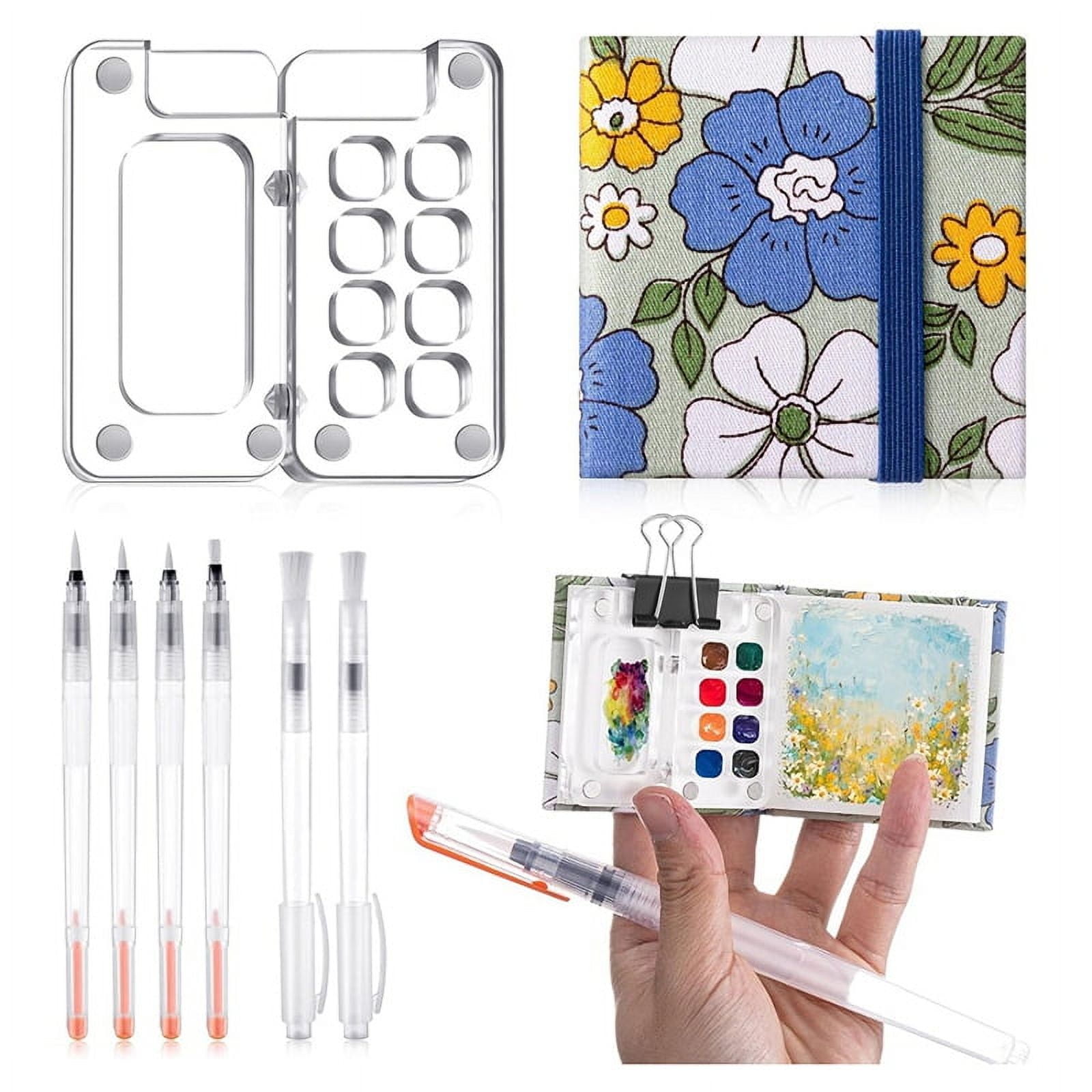 Mini Aquarell Set Mit 24 Farben - Tragbare Malausrüstung Mit Holz-Palette & Skizzenbuch