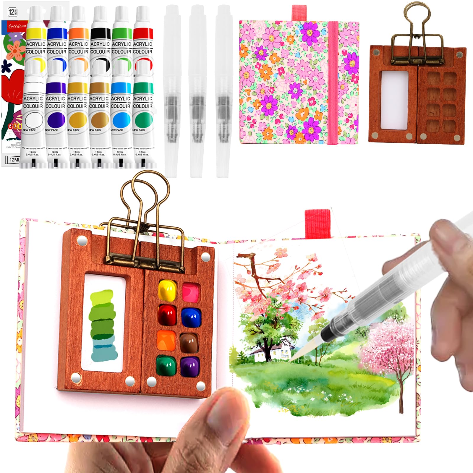Mini Aquarell Travel Set - Pocket Malset Mit 24 Farben & Skizzenbuch