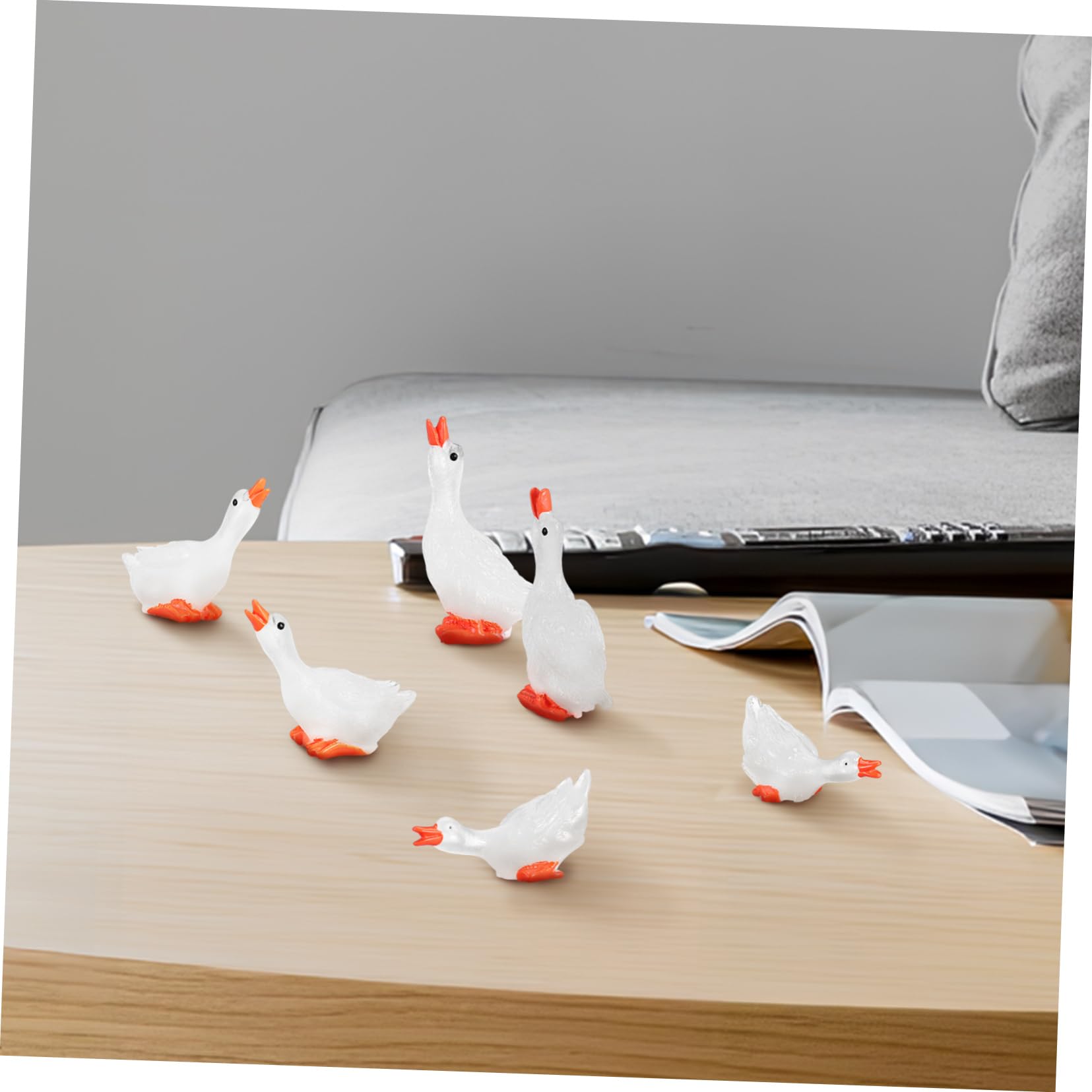 Wie niedlich sind denn diese kleinen Gänse! 6 Stück handgefertigte Miniatur-Figuren aus Harz, die sogar im Dunkeln leuchten. Ca. 4,4cm groß, in weiß und super detailliert. Perfekt für dein Puppenhaus, als Bonsai-Deko, für den Miniatur-Garten oder einfach als süße Tischdekoration. Total robust und verblassen nicht - halten also ewig! Bringen sofort gemütliche Stimmung in jeden Raum. Auch super als Geschenk für Bastelfreunde oder zur Dekoration bei besonderen Anlässen. Einfach zauberhaft!