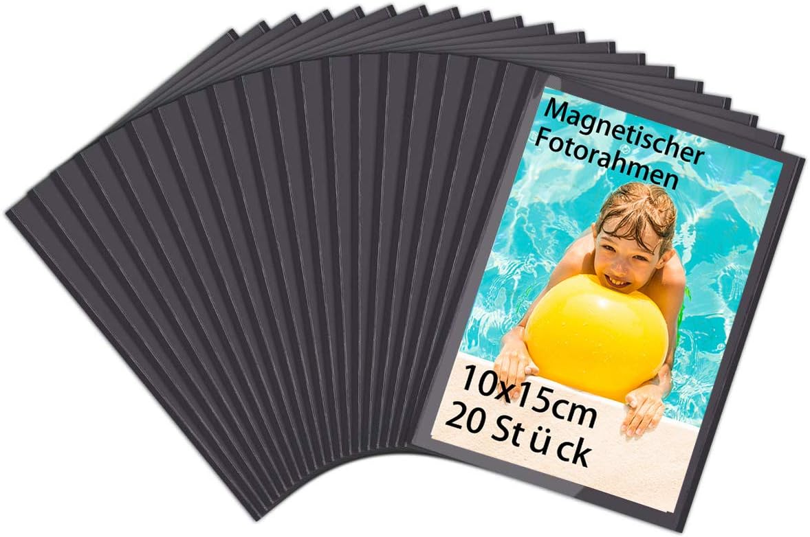 So einfach kannst du deine schönsten Erinnerungen festhalten! Diese 20 bunten Mini-Bilderrahmen mit starken Magneten haften super fest an deinem Kühlschrank, Aktenschrank oder jeder anderen metallischen Oberfläche. Mit den Maßen 5,5 x 8,4 cm sind sie perfekt für deine Lieblingsfotos, Postkarten oder kleine Notizen. Aus flexiblem PVC gefertigt, sind sie robust und langlebig - die transparente Vorderseite lässt deine Bilder richtig zur Geltung kommen. Einfach Foto rein, Rahmen schließen und mit dem Magnet an der gewünschten Stelle befestigen. Perfekt für die Küche, das Home-Office oder das Kinderzimmer. Mach deine vier Wände persönlicher und bunter! Die verschiedenen Farben sorgen für fröhliche Akzente und helfen dir, deine Erinnerungen thematisch zu sortieren. Ein tolles Geschenk für Familie und Freunde zu jedem Anlass!