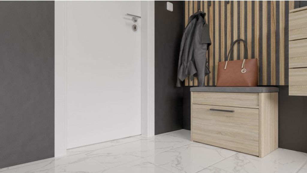 Boah, was für ein praktisches Teil! Der CDF Schuhschrank Parma Mini ist die perfekte Lösung für kleine Flure und Dielen. Mit nur 60 cm Breite, 35 cm Tiefe und 49 cm Höhe findet er auch in beengten Verhältnissen Platz. Das Beste: Er hat eine integrierte Sitzbank mit gepolstertem Sitz - super praktisch zum Schuhe an- und ausziehen! Unter der Sitzfläche ist ein Staufach mit 8 cm Höhe, ideal für Schuhputzzeug, Handschuhe oder andere Kleinigkeiten. Die Flügeltür verbirgt ein Regal im Inneren, wo du mehrere Paar Schuhe ordentlich verstauen kannst. Aus 16 mm laminierter Spanplatte gefertigt, ist der Schrank robust und abriebfest. Die sichtbaren Kanten sind mit ABS-Kunststoff ummantelt - hohe mechanische und chemische Beständigkeit inklusive. Der stylische schwarze Türgriff rundet das moderne Design ab. Die Farbe 'Eiche Artisan' sieht total edel aus und passt zu fast jedem Einrichtungsstil. Montage ist super einfach - alles nötige Zubehör und eine Anleitung liegen bei. Einfach polnische Qualität zum Selbstaufbau! Wenn du also Ordnung in deinem Flur schaffen willst und gleichzeitig eine praktische Sitzgelegenheit brauchst, ist dieser Schuhschrank perfekt. Sieht gut aus und ist mega funktional - was will man mehr?
