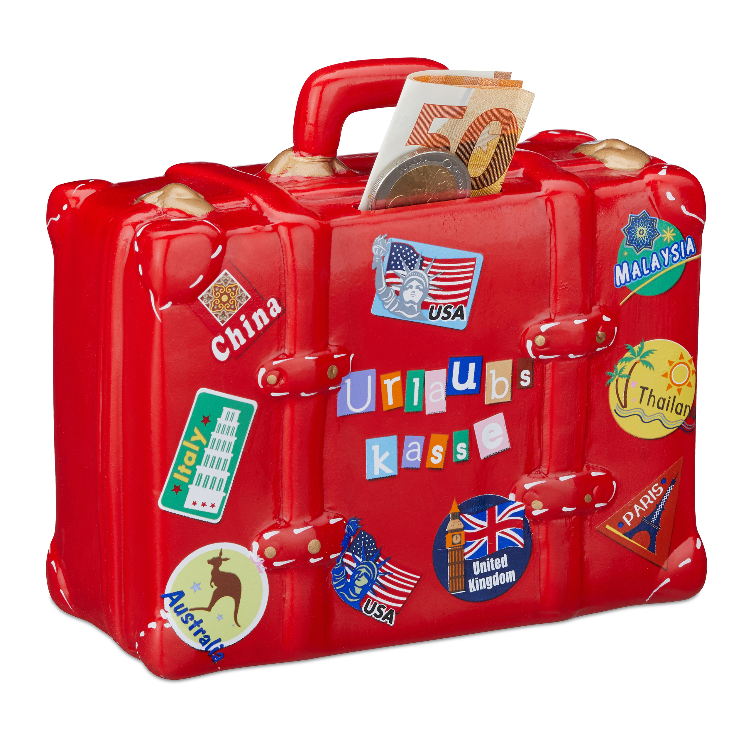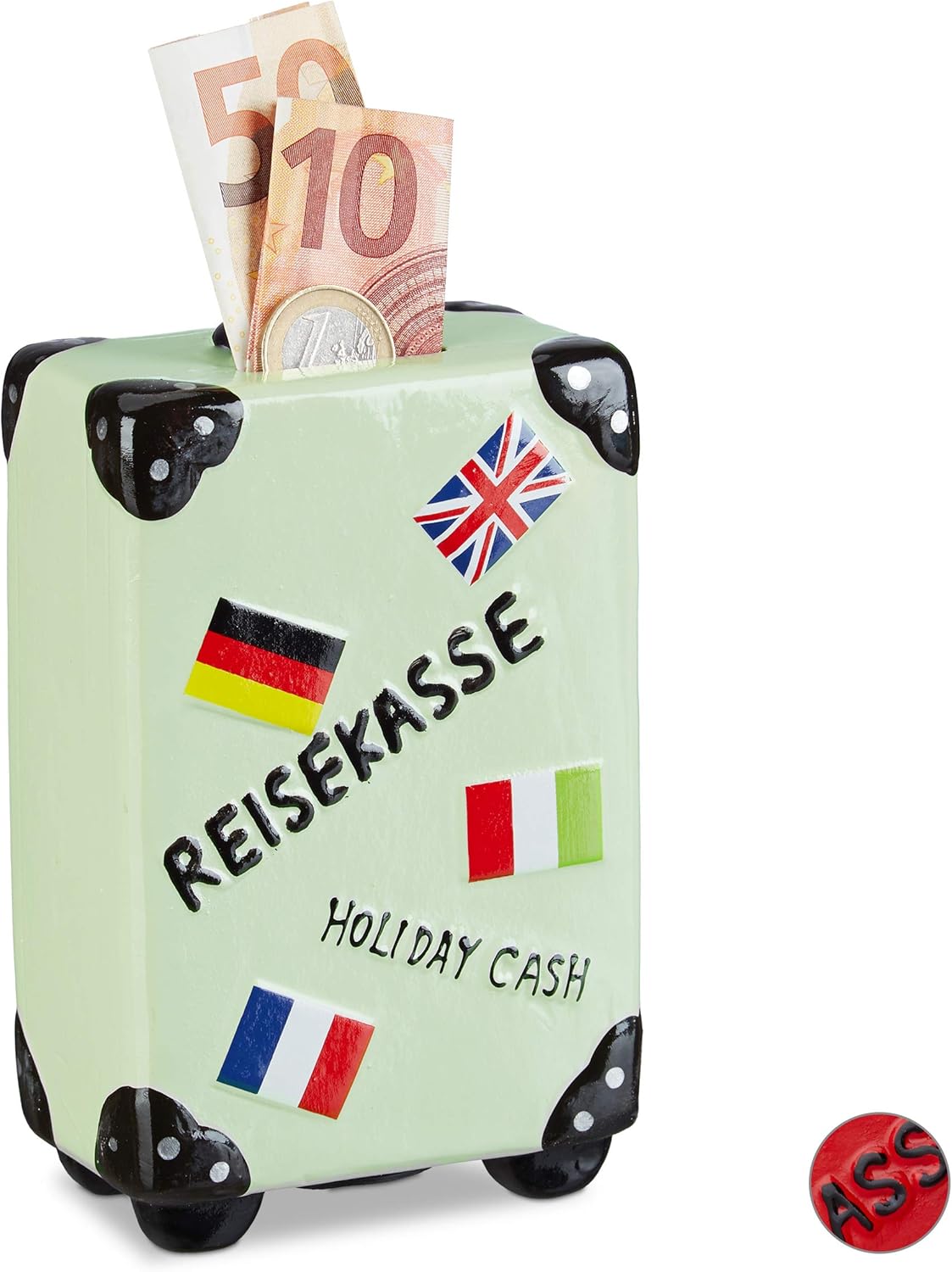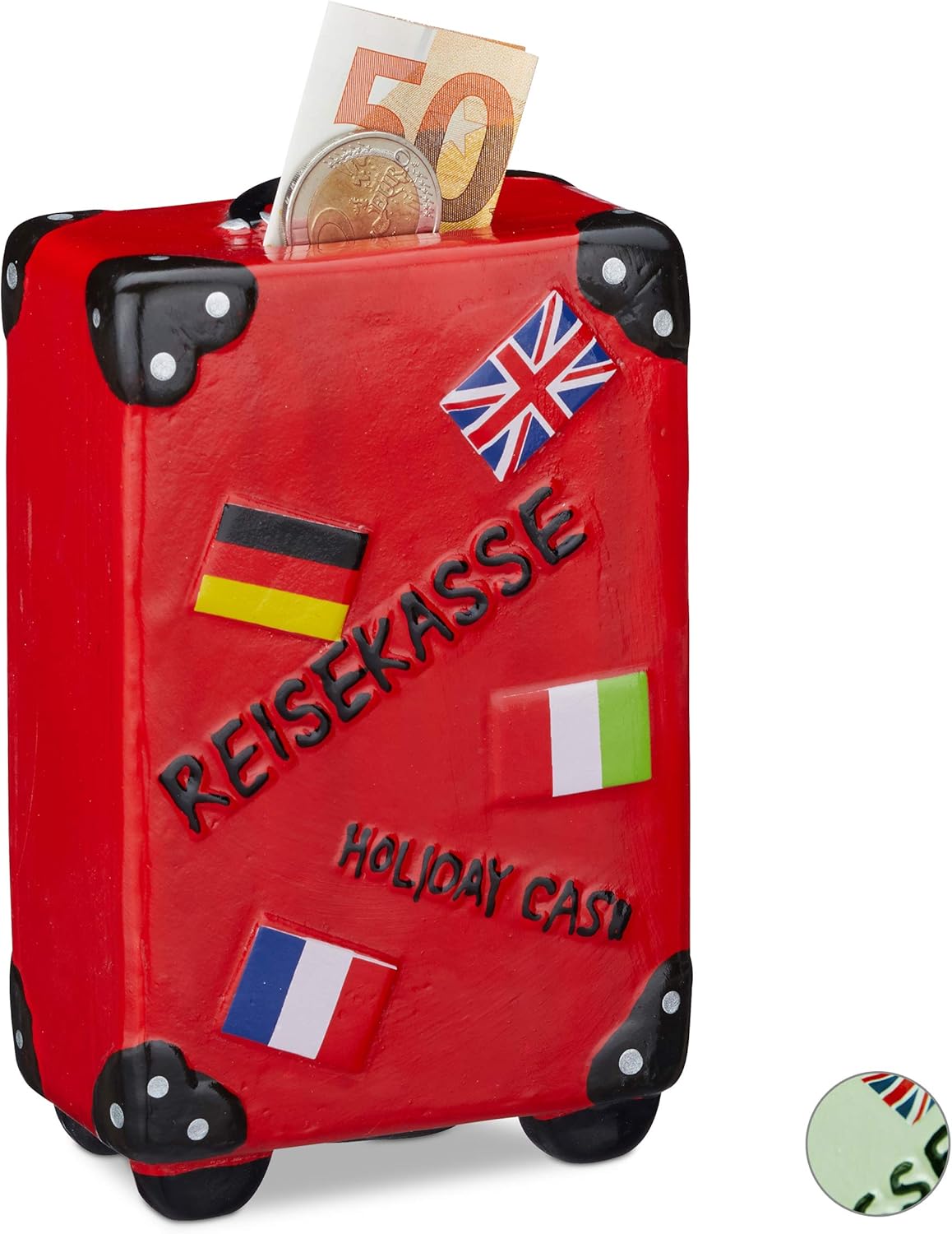Mini Trolley Spardose Urlaub - Silberne Reisekasse Mit Rädern Für Kinder & Reisefans