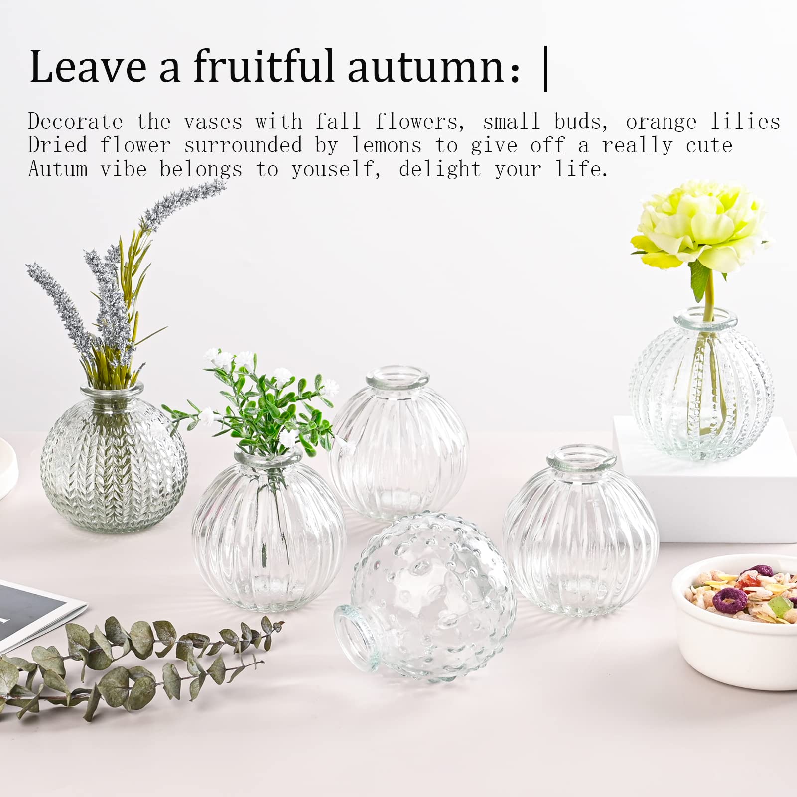 EylKoi Set Von 6 Mini Vasen - Klare Glasvasen Mit Streifen Für Tischdeko