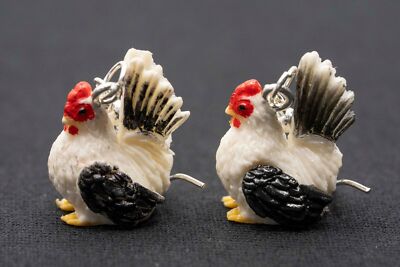 Miniblings Hahn Ohrringe - Versilberte Ohrhänger Mit Bauernhof Motiv 20x30mm