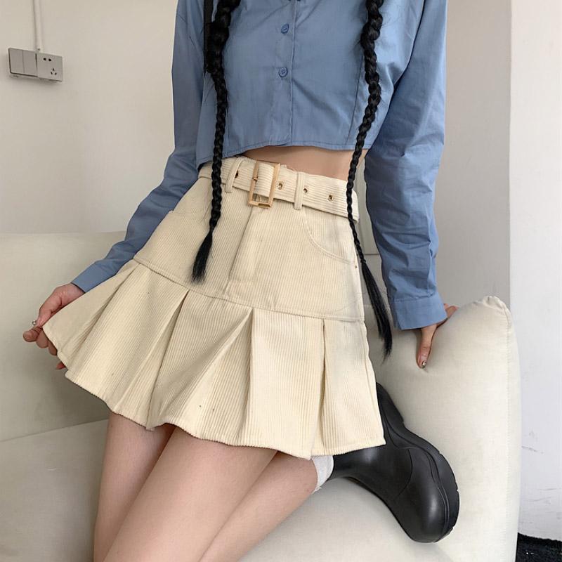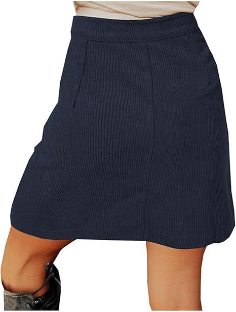 Mesduri Damen Cord Minirock A-Linie - Vintage Faltenrock Mit Knopfleiste | Hohe Taille Herbstrock