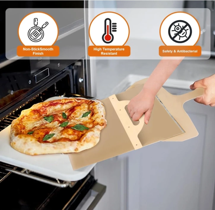 Das Geheimnis? Der spezielle Schiebemechanismus! Der Griff ist abnehmbar, falls du den Teig vorher lockern willst. Und die Antihaft-Beschichtung sorgt dafür, dass wirklich nichts kleben bleibt. Maße? 55x35 cm - passt für kleine Snacks und große Familienpizzen!