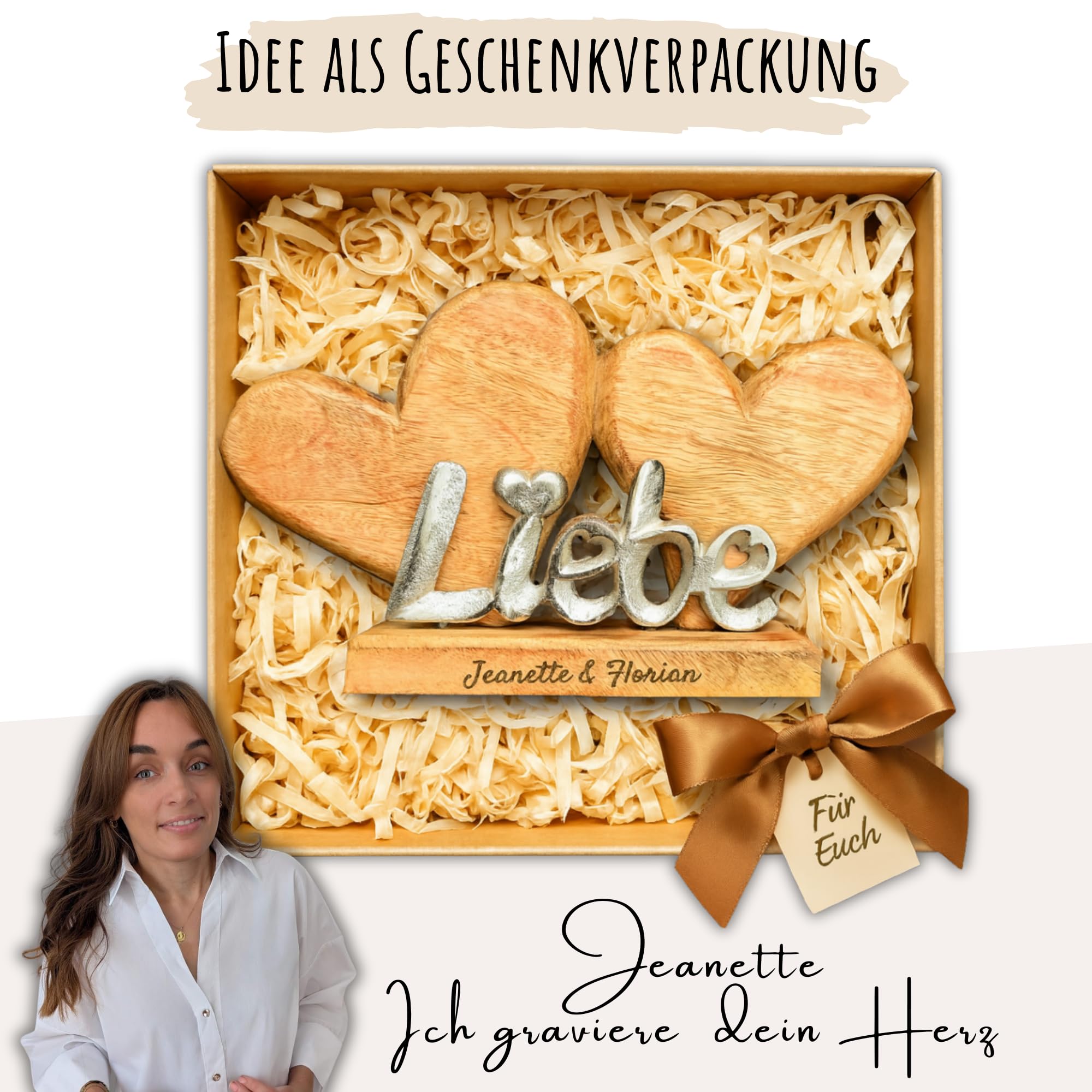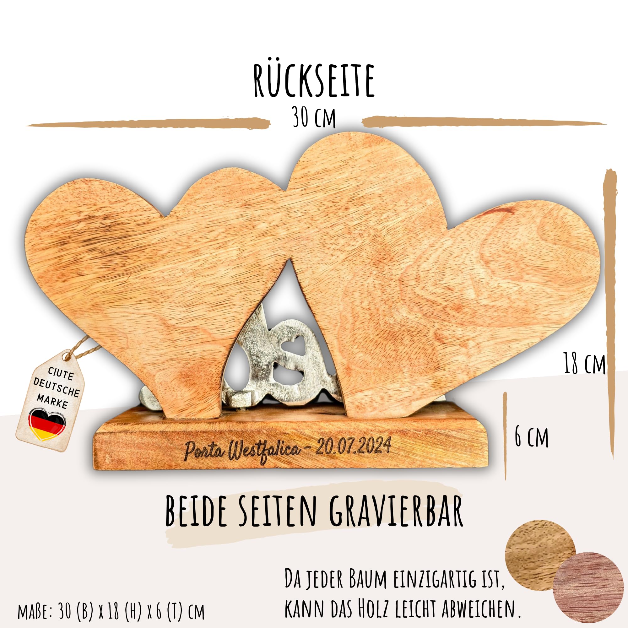 C|UTE Holzherzen Mit 'Liebe' Schriftzug - Personalisierte Hochzeitsgeschenke Aus Massivem Holz